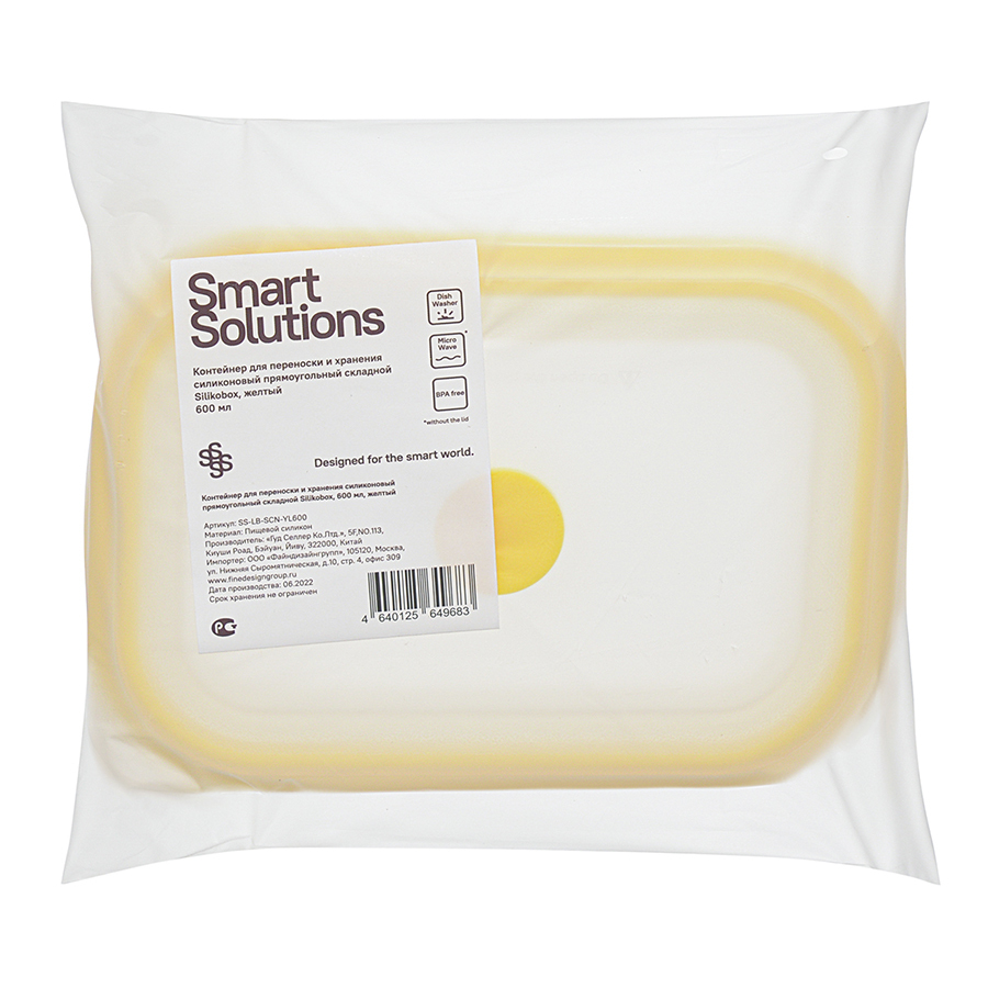 Материал: пищевой силикон. Размеры: 16,5х11,5х7 см. Размеры в сложенном виде: 16,5х11,5х3,4 см. Объем: 600 мл. Цвет: желтый.
