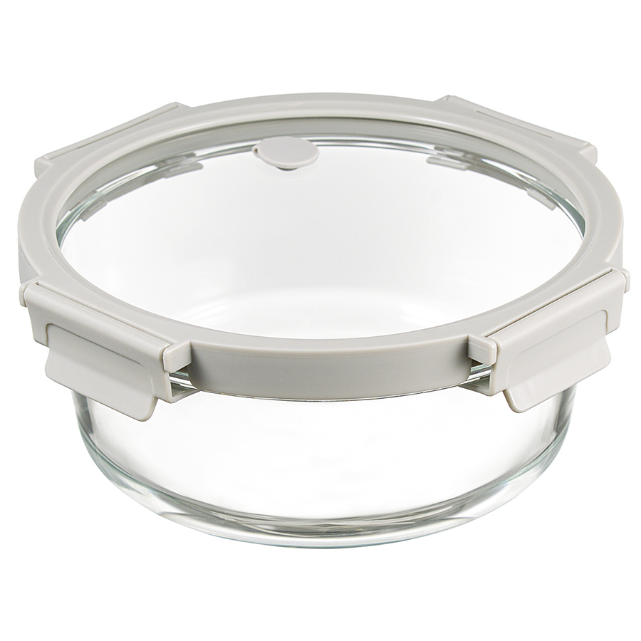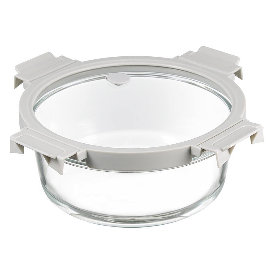 Контейнер для запекания и хранения круглый Click Glass, 1,3 л, светло-серый