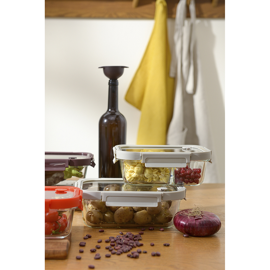 Контейнер для запекания и хранения прямоугольный Click Glass, 1,5 л, светло-серый