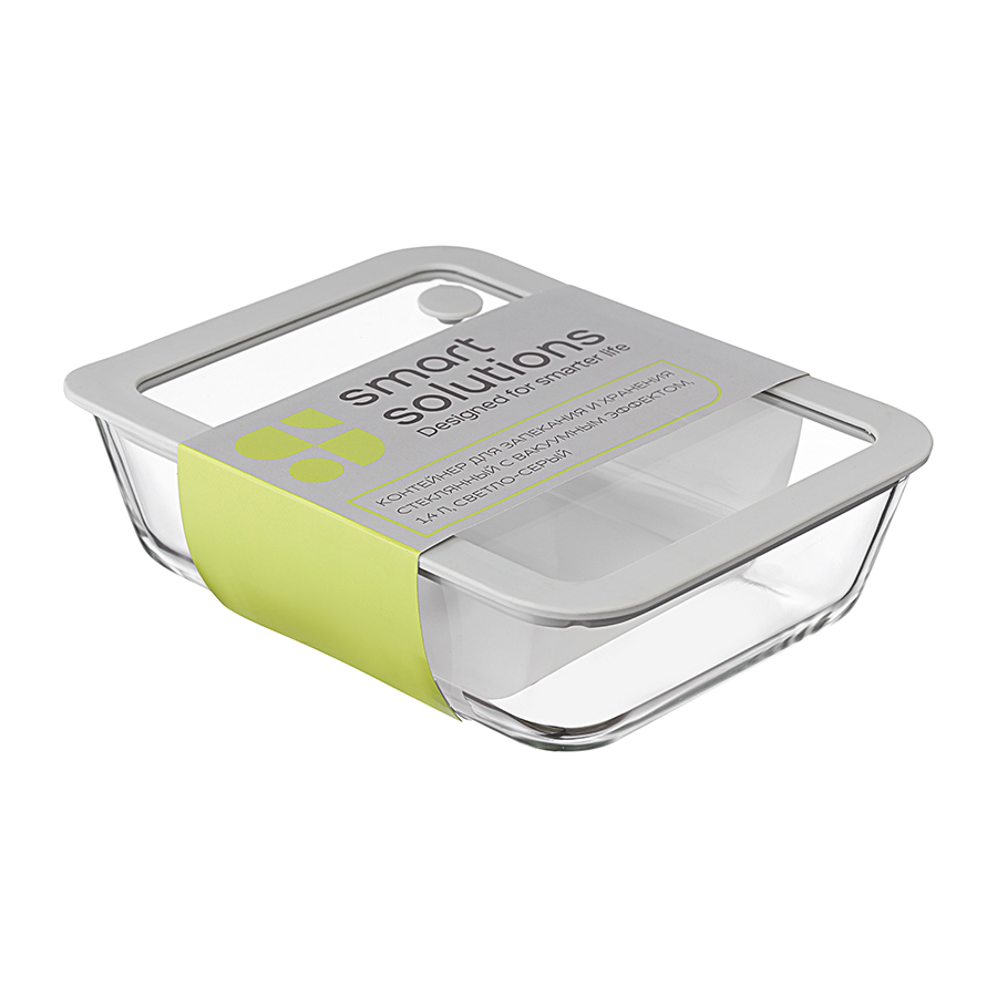 Контейнер для запекания и хранения с вакуумным эффектом Vacuum Glass, 1,4 л, светло-серый