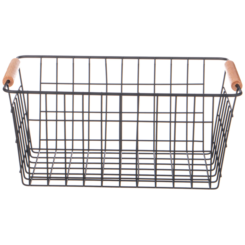 Стильная металлическая корзина бренда с деревянными ручками идеально подойдет для оформления пространства вашей кухни или ванной комнаты, послужит стильным декором интерьера. Поможет в организации пространства и хранении вещей: ванных и кухонных принадлежностей, мелочей, игрушек, фруктов, косметики и других предметов.