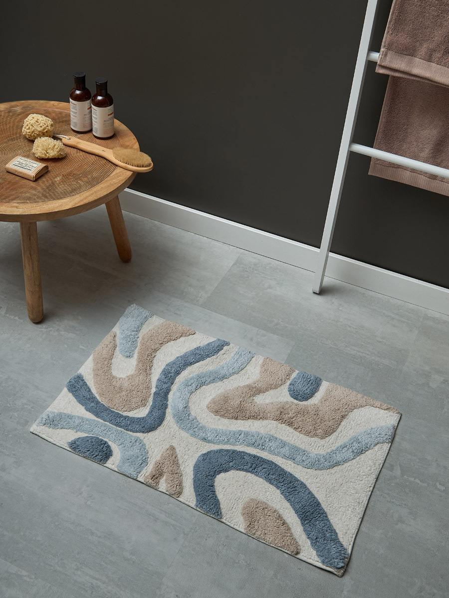 Коврик для ванной Flow серо-синего цвета из коллекции Ethnic, 50x80 см