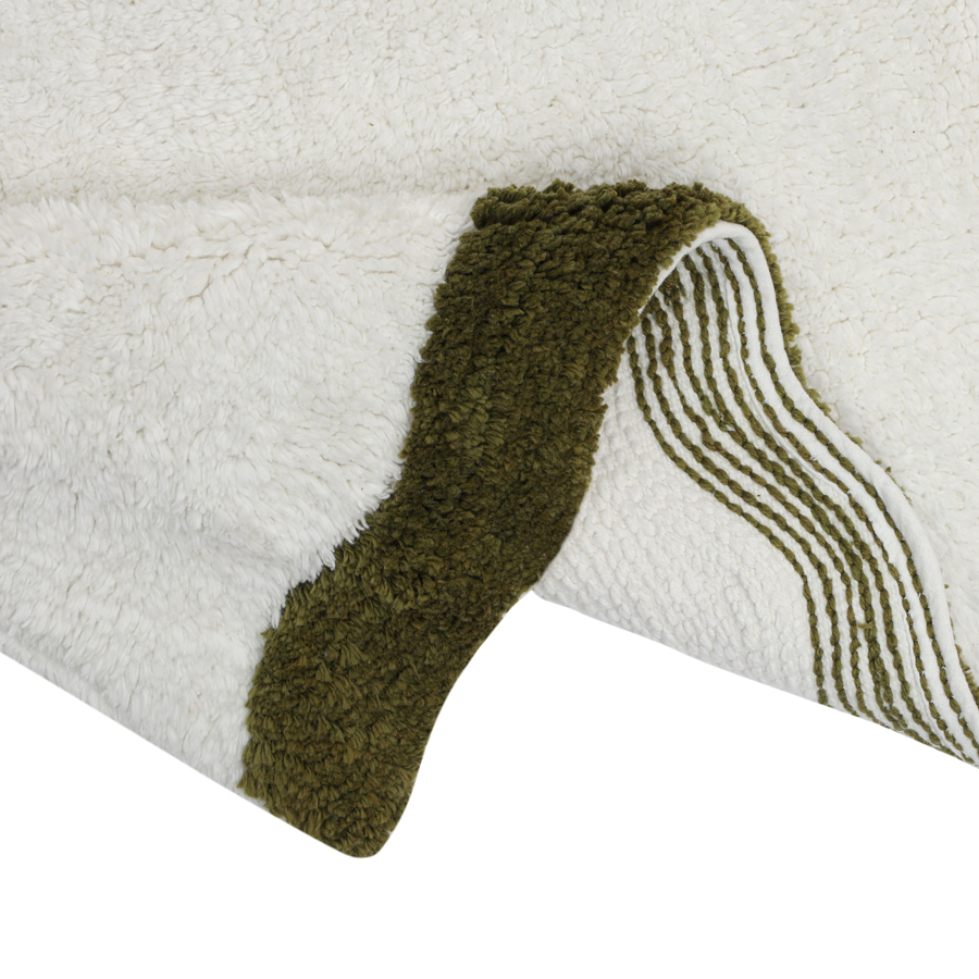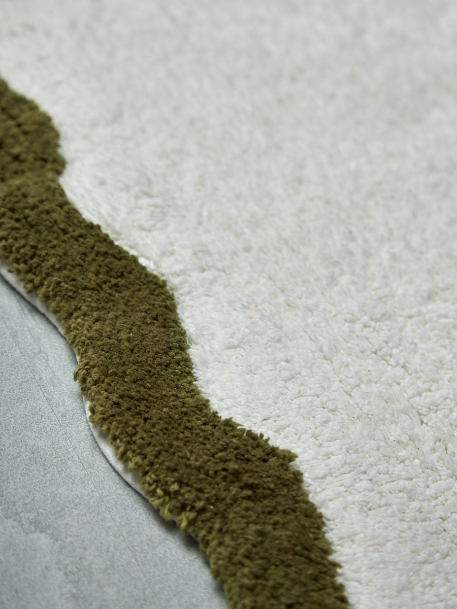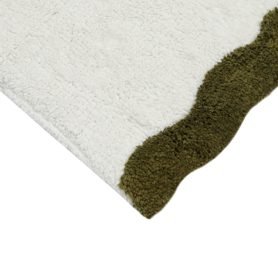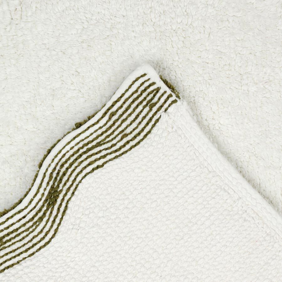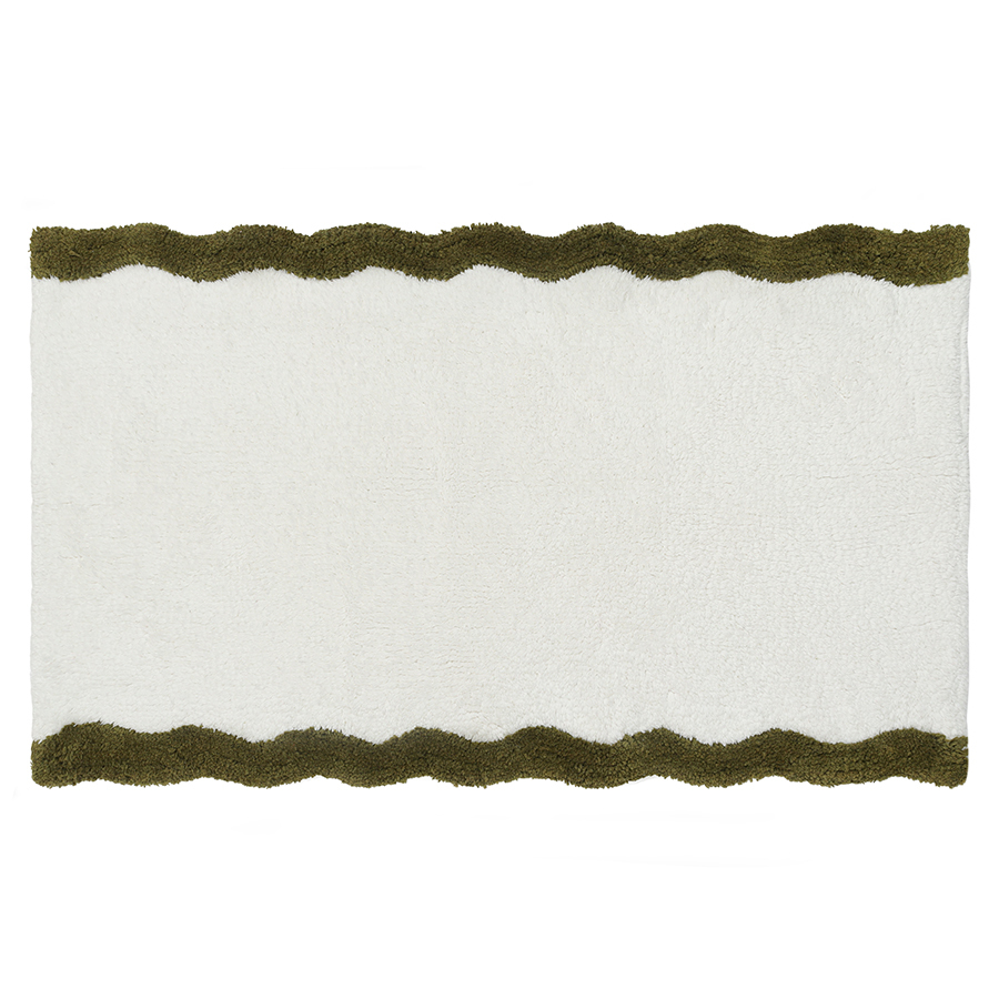Коврик для ванной с кантом оливкового цвета из коллекции Trendy Ruffles понравится ценителям натуральных материалов и трендового дизайна. Текстиль с волнистой отделкой, напоминающей изящные раковины морских гребешков, стал ярким элементом стиля Ар Деко – и сейчас возвращается в моду, появляясь в самых актуальных интерьерных решениях.