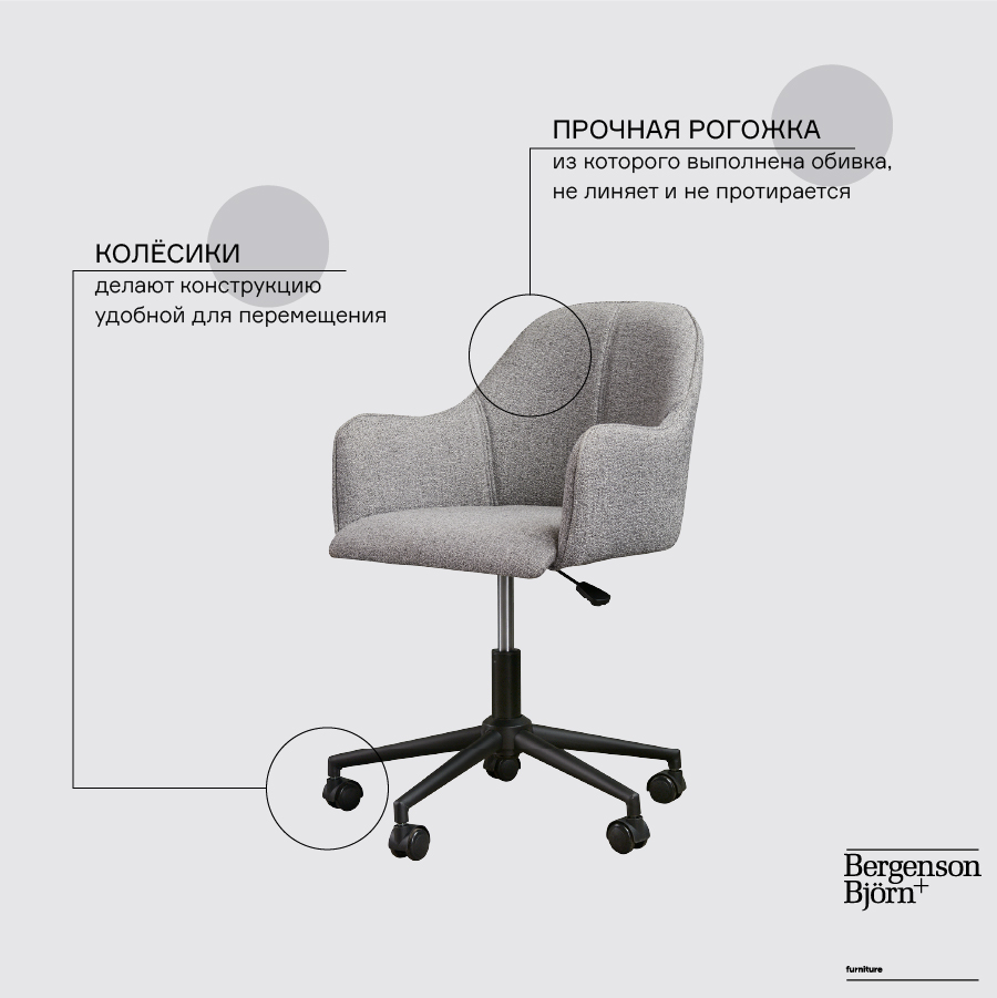 Кресло Isla имеет классический силуэт и нейтральный оттенок, за счет чего органично вписывается в различные варианты оформления интерьера. Наличие подлокотников и высокая спинка обеспечивают комфорт во время сидения. Особенности дизайна делают конструкцию устойчивой и надежной. Обивка из рогожки отличается износостойкостью, хорошо очищается от загрязнений и долго сохраняет первозданный вид. Мебель оснащена колесиками для удобного перемещения.