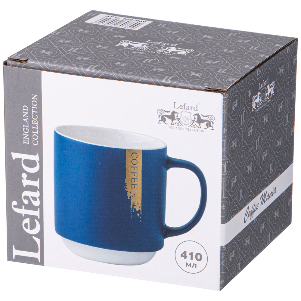 Кружка TM Lefard с лаконичным дизайном имеет удобную ручку и отличный объем 410мл. Кружка изготовлена из качественного фарфора. Отличный выбор для подарка. Продукция сертифицирована и безопасна для контакта с пищевыми продуктами. Можно ставить в микроволновую печь и мыть в посудомоечной машине