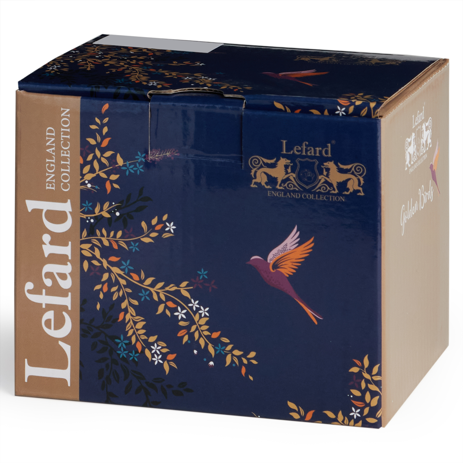 ТМ LEFARD роскошная коллекция «Golden Birds» яркой сказочной посуды из качественного фарфора. Перенесите себя в новый яркий мир, созданный для традиционного чаепития. Необычайно красивая, изящная, изысканная и утонченная посуда с изображением экзотических птиц и растений. Краски рисунка сохраняют яркость даже после длительного использования. Прекрасный подарок. Изделия упакованы в фирменную цветную коробку. Нельзя использовать в микроволновой печи. Разрешена только деликатная ручная мойка.
