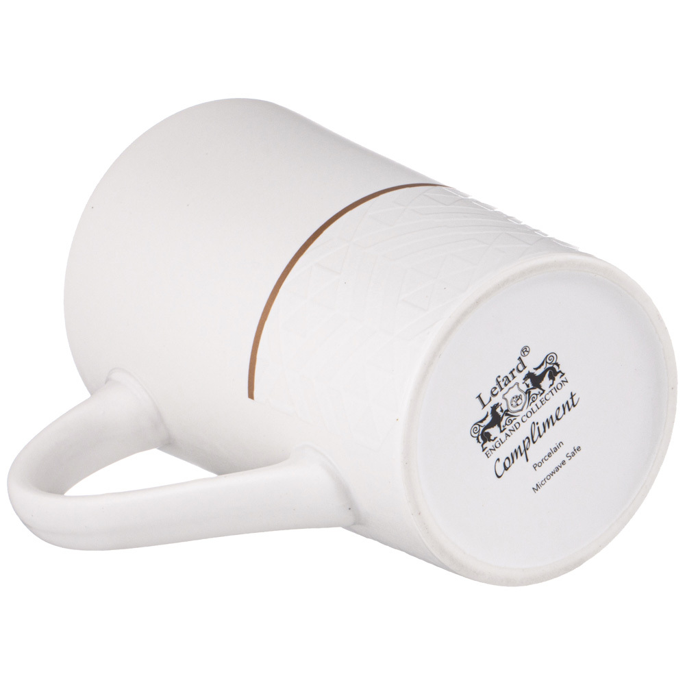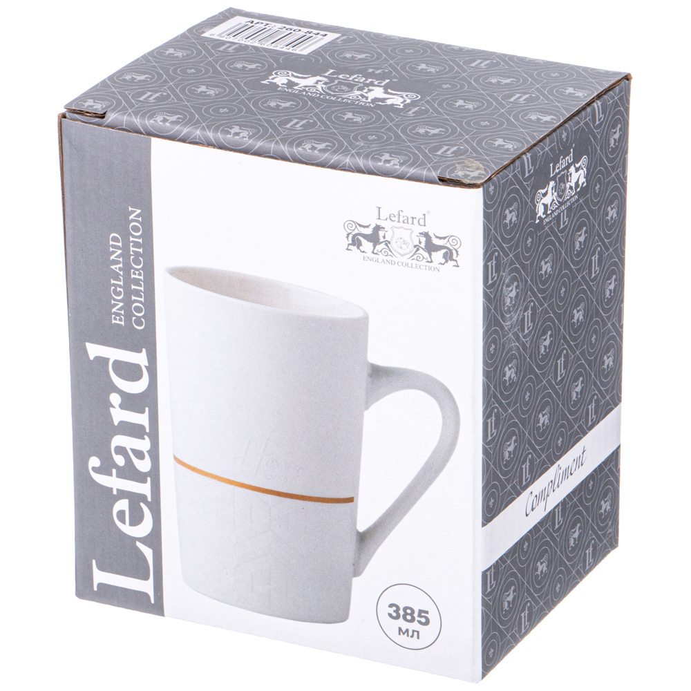 Кружка TM Lefard с лаконичным дизайном имеет удобную ручку и отличный объем 380мл. Кружка изготовлена из качественного фарфора. Отличный выбор для подарка. Продукция сертифицирована и безопасна для контакта с пищевыми продуктами.