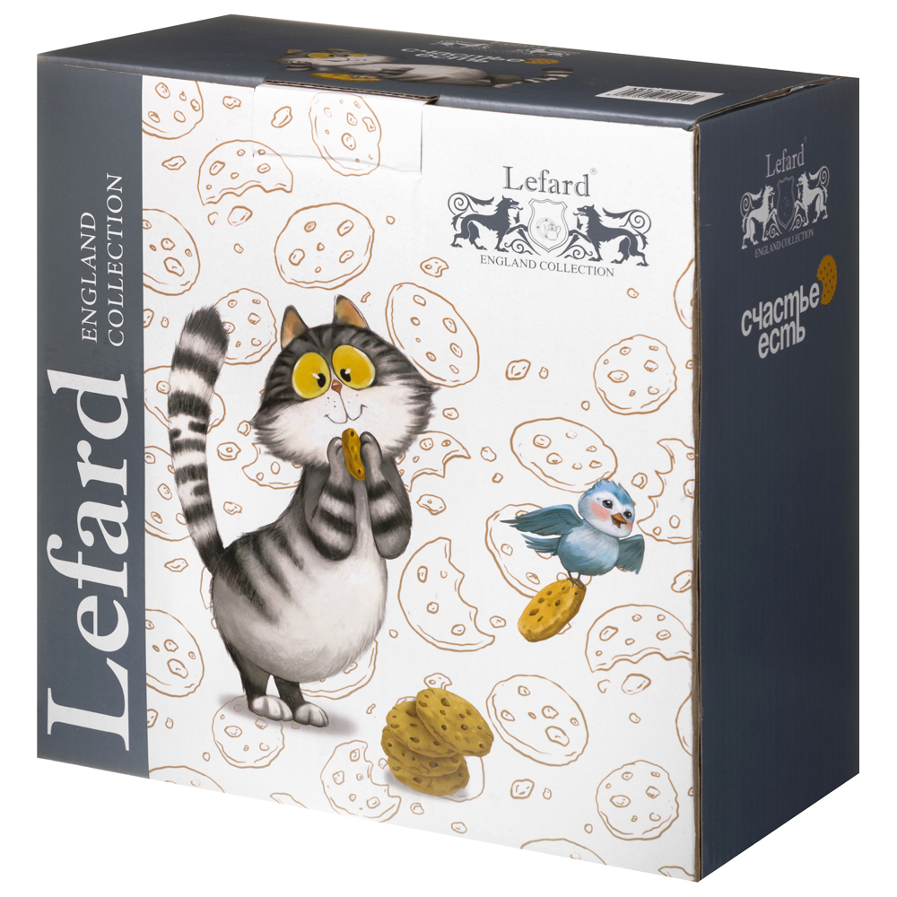 Всем, кто полон энергии и задора, любит кофе и следит за фигурой посвящается коллекция «Счастье есть» от ТМ LEFARD. Это лучший подарок детям, родителям, друзьям и коллегам. Поднимайте настроение вместе с веселым котиком, верьте, Счастье есть! Кружки, наборы посуды, салатники, закусочные и обеденные тарелки выполнены из высококачественного фарфора. Удобные формы и размеры. Красочная упаковка. Продукция прошла сертификацию, безопасна для контакта с пищевыми продуктами. Можно использовать в микроволновой печи, мыть в посудомоечной машине.
