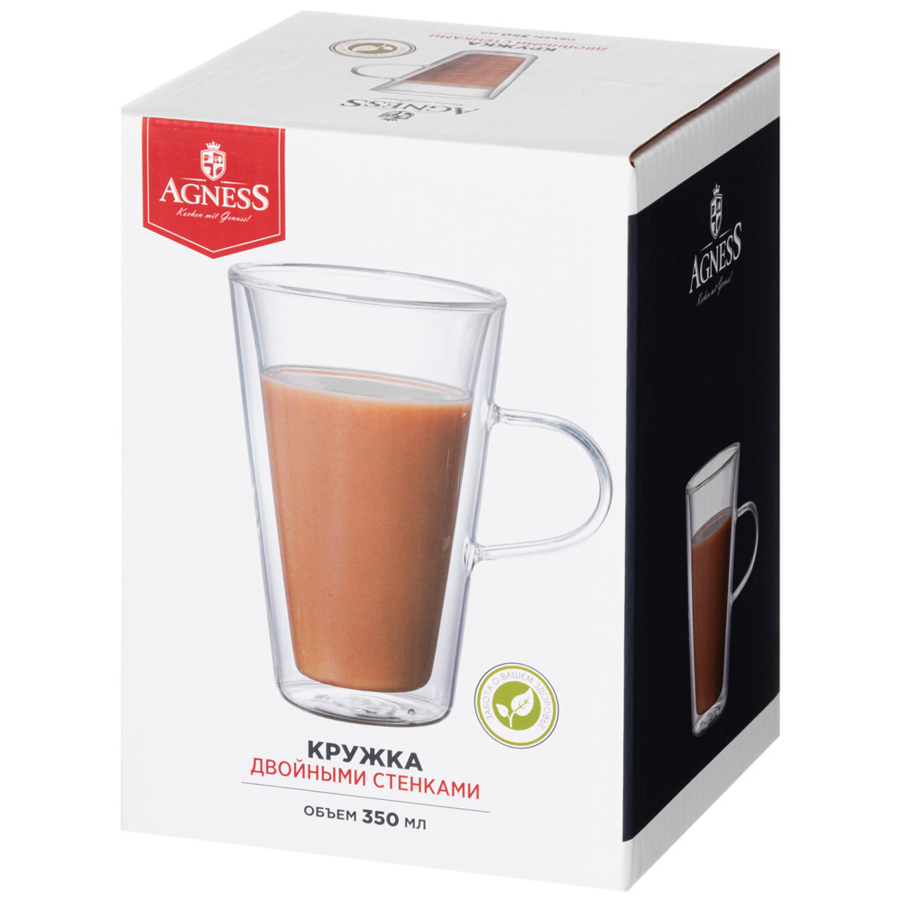 Бренд AGNESS представляет Вашему вниманию коллекцию стеклянной посуды с двойными стенками DOUBLE-WALL. В данной коллекции имеются кружки и стаканы различных форм и объемов. Благодаря двойным стенкам, кружки и стаканы DOUBLE-WALL долго сохраняют температуру горячих напитков, а стенки изделия не нагреваются, обеспечивая комфорт и безопасность использования. При этом кружки и стаканы DOUBLE-WALL прекрасно подходят и для холодных напитков или десертов – благодаря двойным стенкам содержимое дольше не нагревается и сохраняет все свои качества.