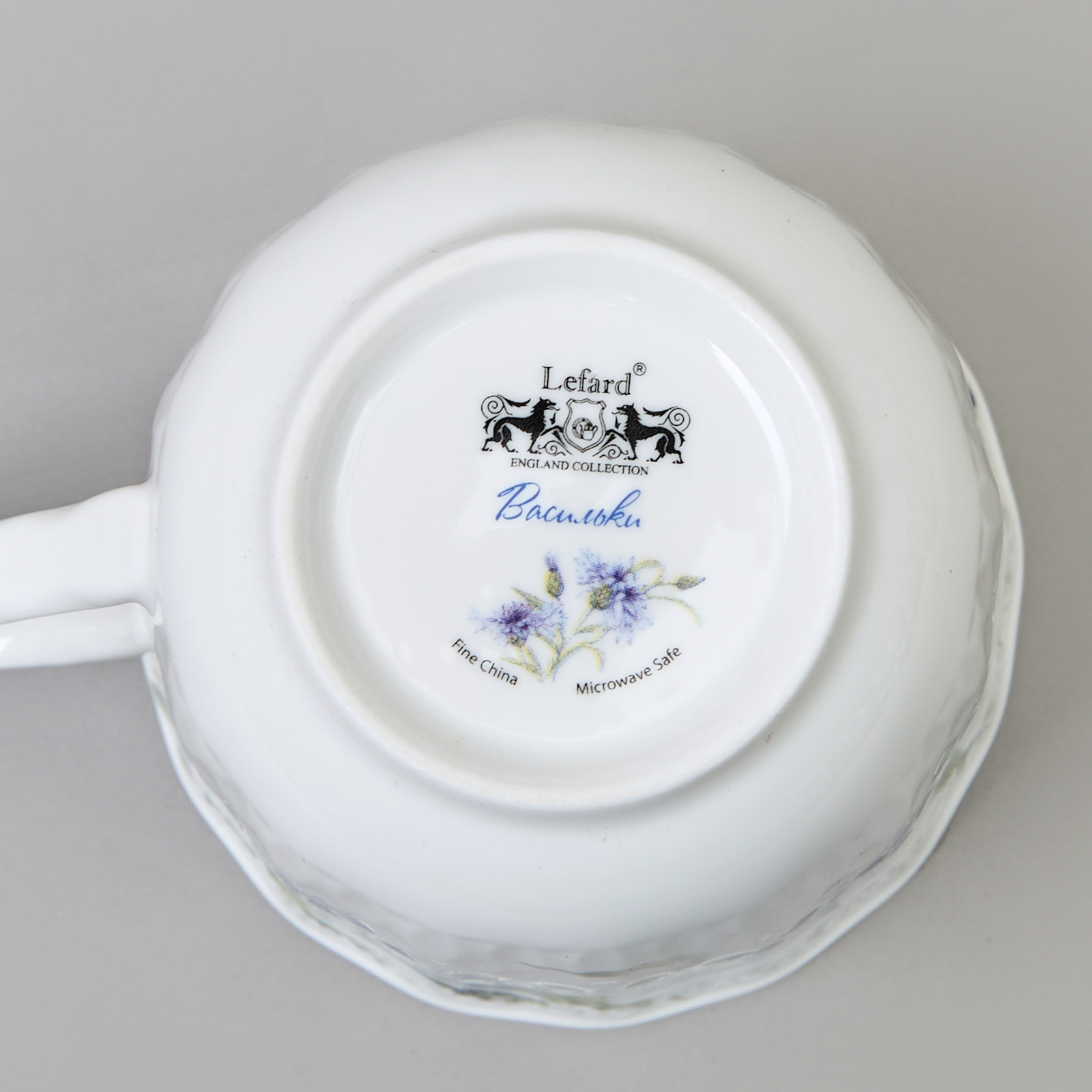 «Васильки» ТМ LEFARD - уникальная коллекция лёгкого, тонкого, прозрачного и прочного фарфора. Изящная рельефная сетка с красивым кантом, сверкающая глазурь. Эксклюзивный дизайн полевого василька небесного цвета, создающего романтическое настроение. Оригинальное размещение дизайна на рельефной части изделий, что создает дополнительную игру рисунка и объем. Широкий ассортимент позволяет сервировать обеденный стол, вечернее чаепитие – идеальный вариант для всех случаев сервировки. Коллекция представлена чайным сервизом, чайными парами удобных объемов, десертными тарелками. Стильная цветная коробка, прекрасный подарок. Все изделия прошли сертификацию. Безопасны для контакта с пищевыми продуктами. Можно смело использовать в микроволновой печи и мыть в посудомоечной машине.