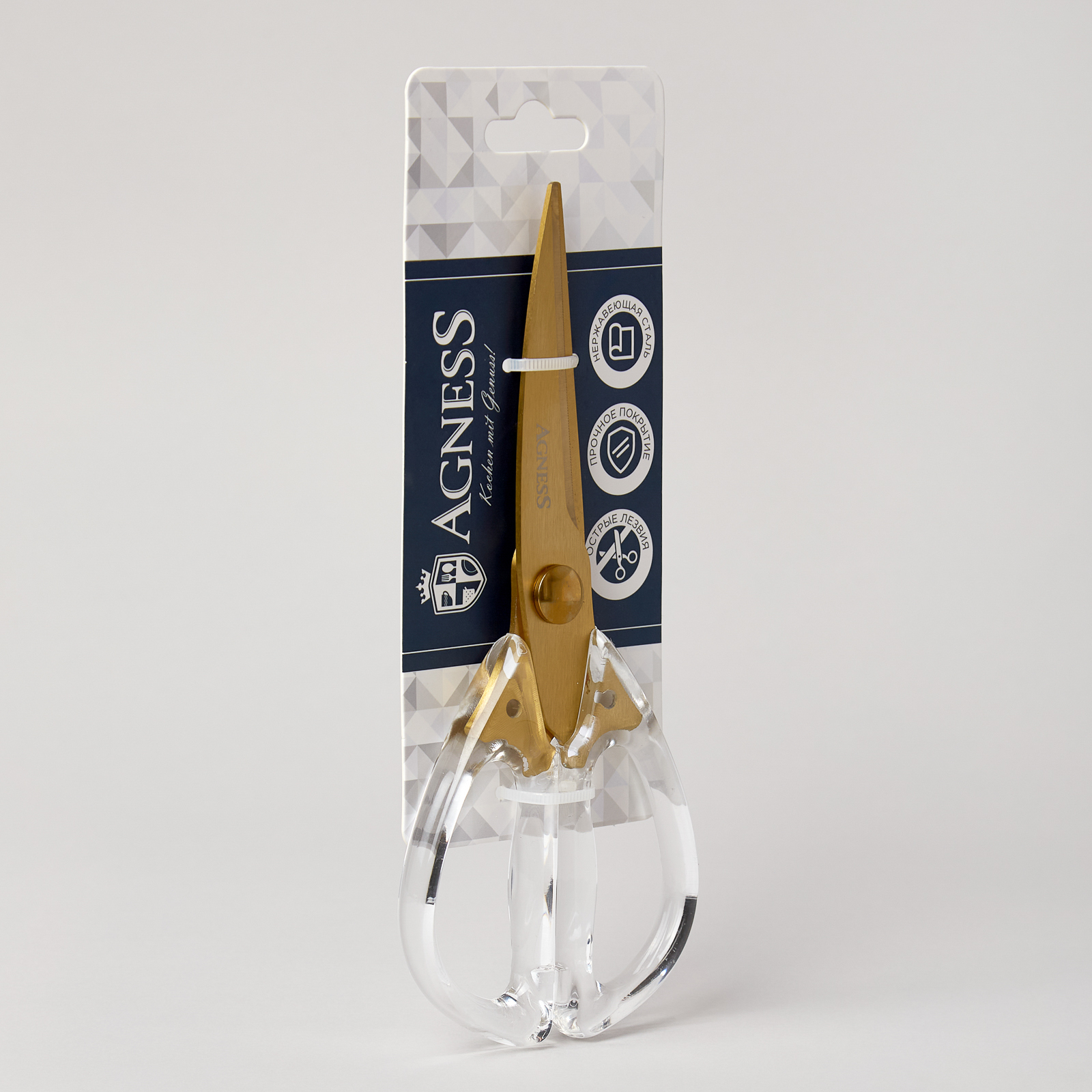Многофункциональные разделочные ножницы для кухни изготовлены из высокопрочной нержавеющей стали. Тиатновое покрытиея лезвия надежно защищают метал от коррозии. Универсальные кухонные ножницы прекрасно режут бумагу, фольгу и идеально подойдут для вскрытия различных упаковок, нарезки зелени для салатов. Удобная рукоятка хорошо сидит в руке и не скользит.Такие кухонные ножницы станут хорошим помощником для любой хозяйки!