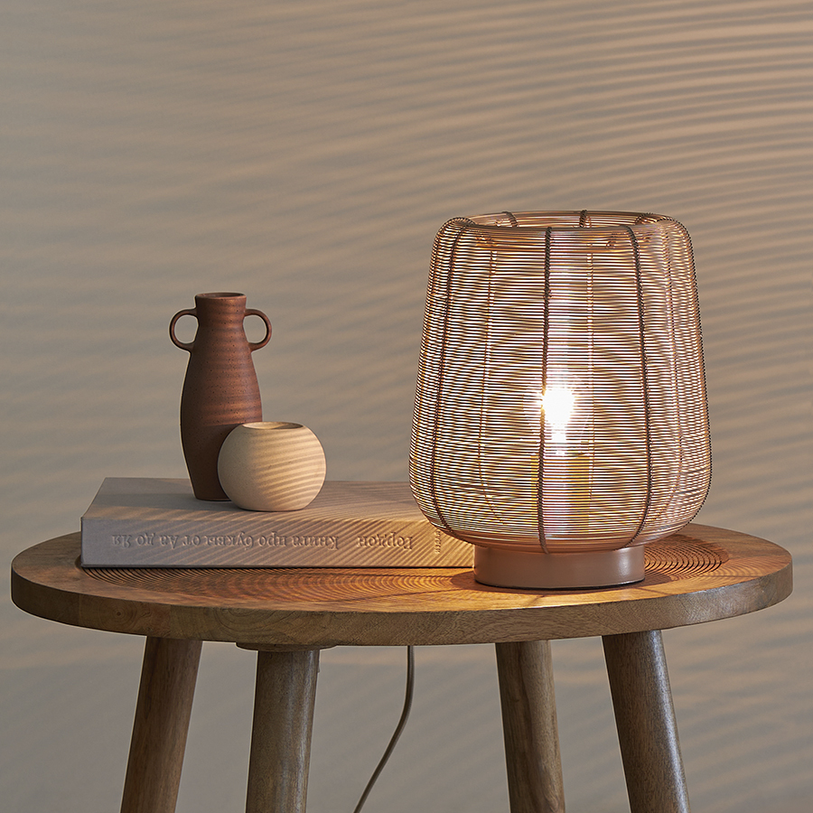 Лампа настольная Vinger от бренда Bergenson Bjorn – прекрасный способ добавить интерьеру характер и индивидуальность. Светильник привлекает качественным исполнением и интересным дизайном. Его плафон из металлической сетки рисует на стенах и потолке живописные тени, создавая в помещении волшебную атмосферу.