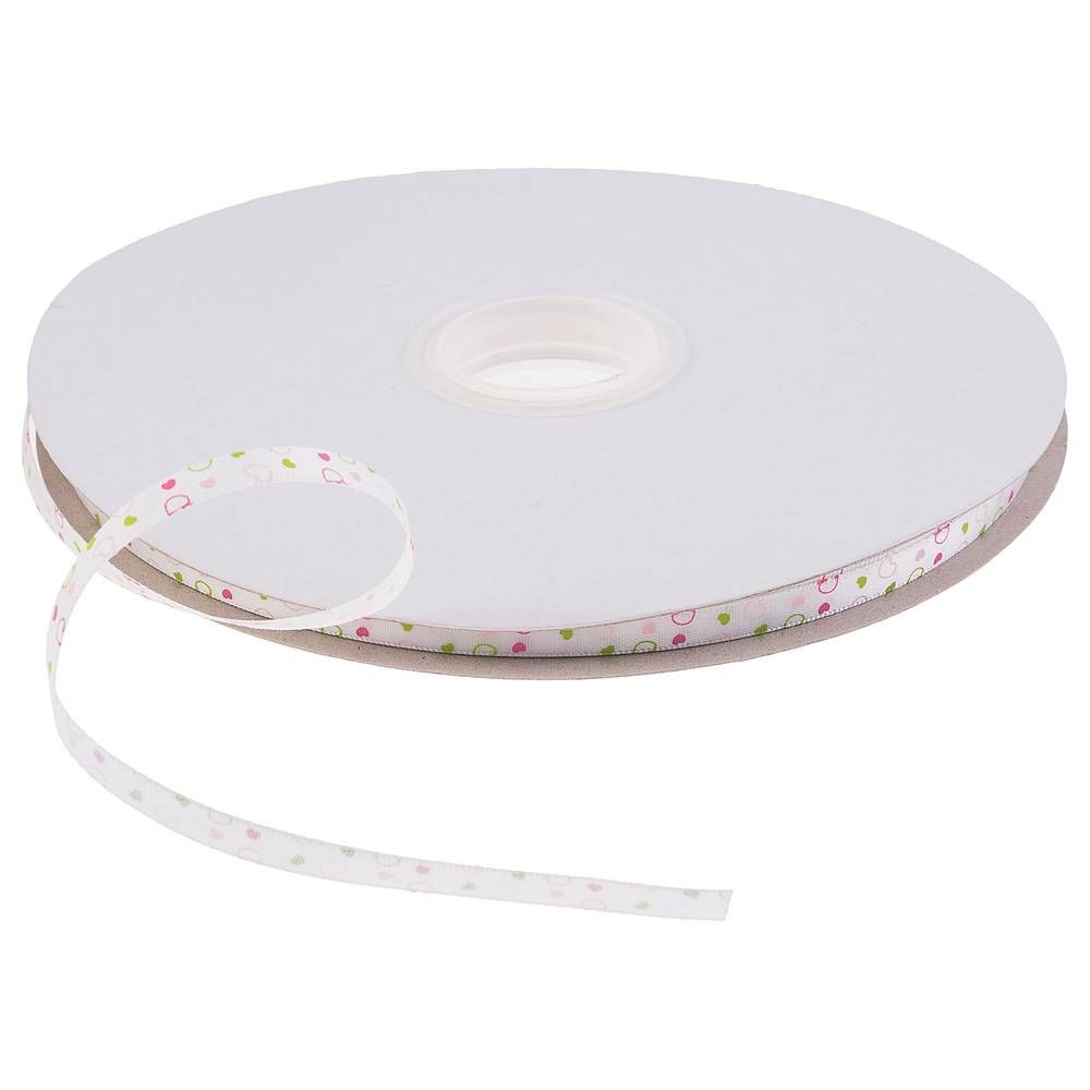ЛЕНТА АТЛАСНАЯ РАЗНОЦВЕТНЫЕ СЕРДЕЧКИ ,БЕЛАЯ, ШИР0,6см, БОБ 91,4