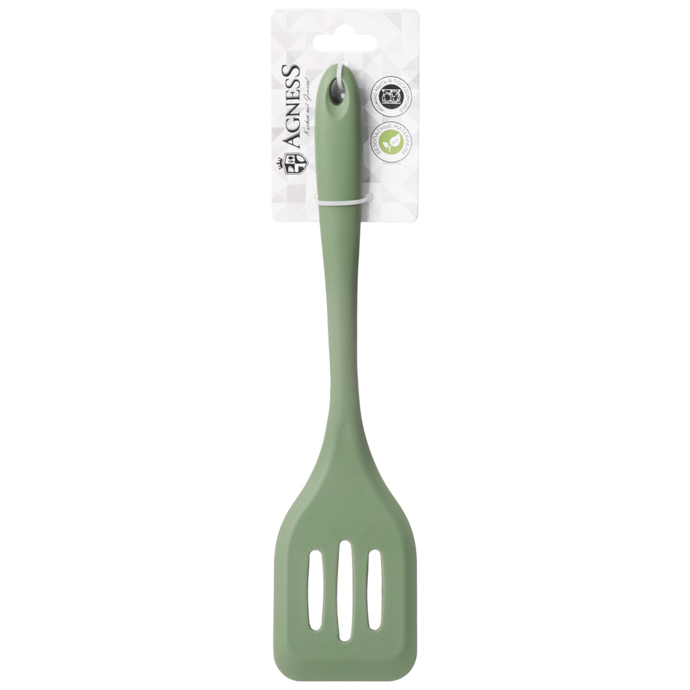 Силиконовая лопатка универсальная с прорезями . Размер лопатки хорошо продуман, длинная удобная в захвате ручка продолжается широкой рабочей частью, в которой есть прорези. Сочетание прочности и гибкости позволяет справиться как с деликатными, так и с тяжелыми продуктами. Кулинарный инвентарь можно мыть в посудомоечной машине.