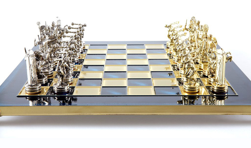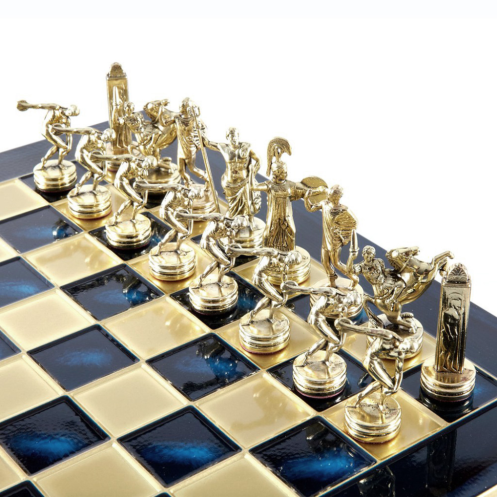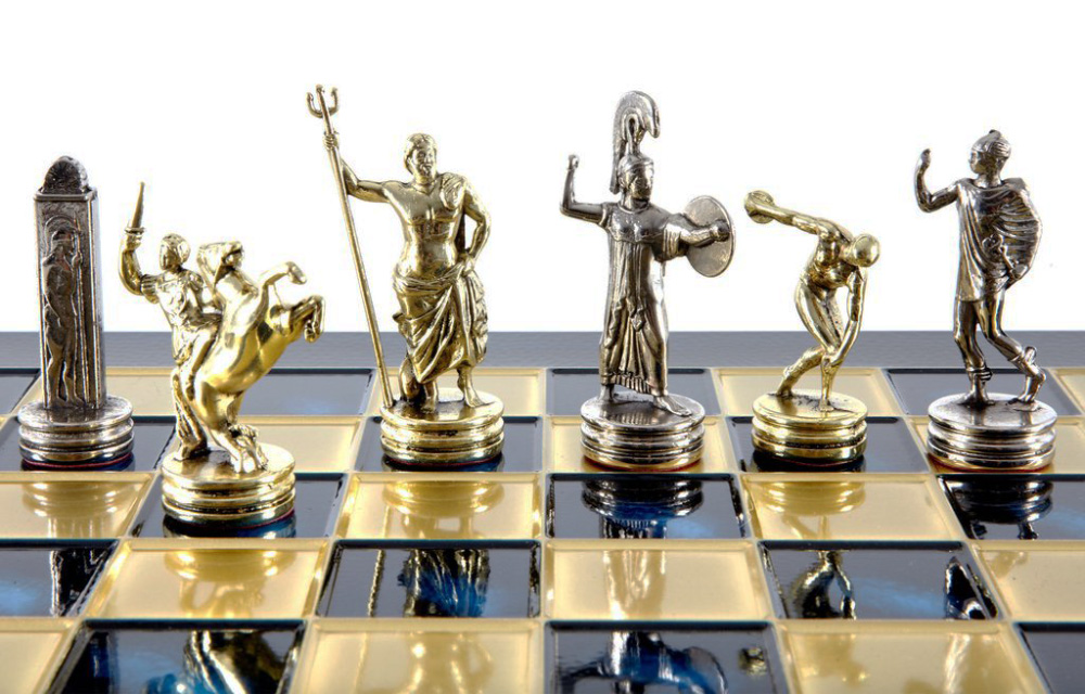 Набор шахмат «Олимпийские Игры» произведен в Греции на фабрике, специализирующейся на изготовлении шахмат и нард с 1970 года. Их изделия отличаются высокой степенью детализации отделки персонажей, оригинальным оформлением игральных досок и отменным качеством на протяжении всех лет деятельности. Краска на игровое поле наносится вручную, что наделяет каждый набор индивидуальностью и делает его неповторимым.