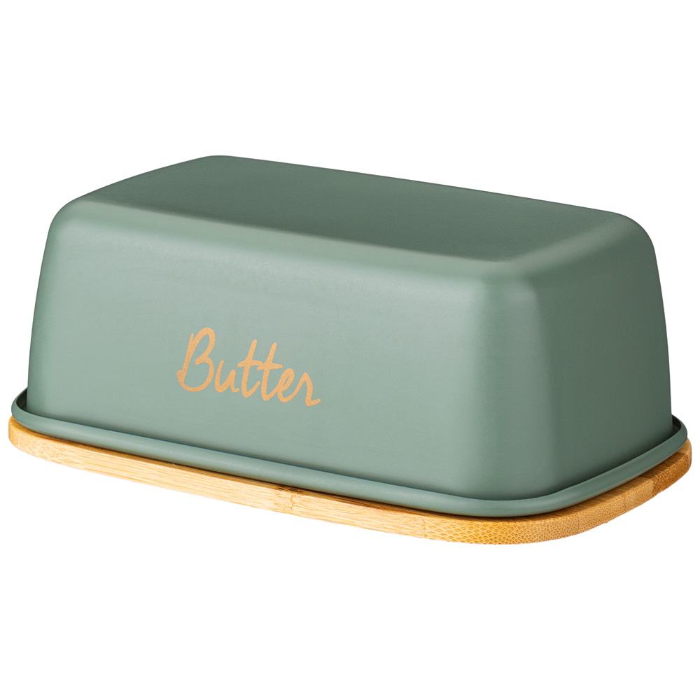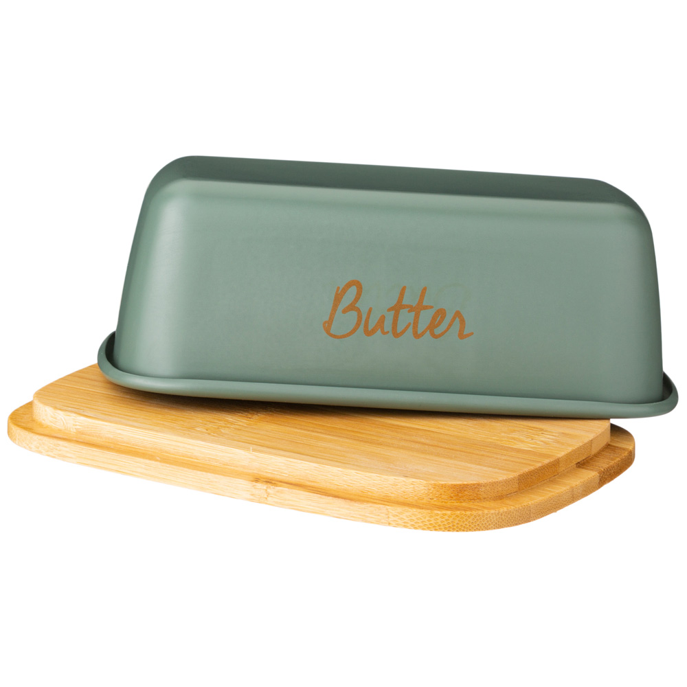 Основа масленки из натурального дерева. Стальная крышка достаточно плотно прилегает к основе, что позволяет защитить продукты от обветривания и проникновения посторонних запахов.