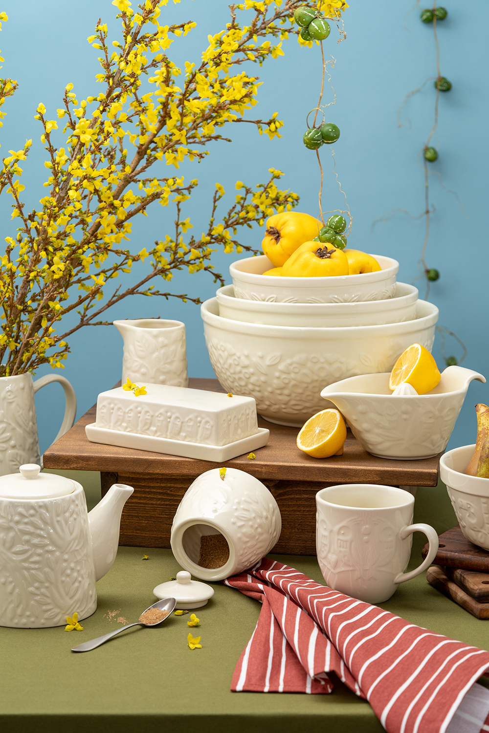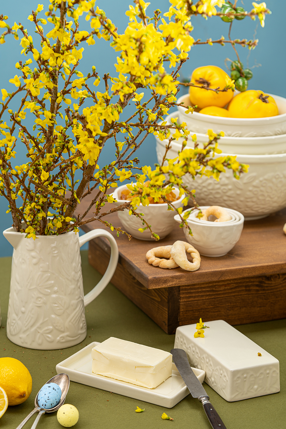 Масленка из коллекции Birds of Paradise – качественная посуда из экологичной каменной керамики, которая дольше сохраняет продукты свежими и великолепно дополняет любую сервировку. Отличительной особенностью серии является объемный узор природной тематики, придающий дизайну элегантные нотки. Благодаря высокой прочности и устойчивости материала к износу изделие не теряет привлекательный внешний вид на протяжении всего срока службы. Покрытие глазурью облегчает уход, обеспечивает декоративность и дополнительную защиту от внешних воздействий. Масленка состоит из поддона для масла с небольшими бортиками и объемной крышки прямоугольной формы.