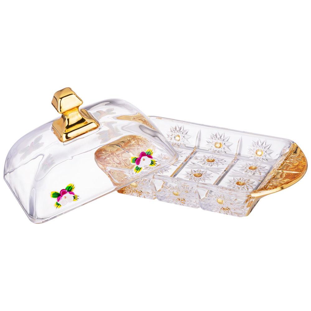 Коллекция стеклянной посуды LEFARD GOLD GLASS сочетает в себе универсальность и любимый многими классический дизайн. Она отлично подойдет для сервировки не только кондитерских изделий, но и фруктов, снеков, джема, варенья и много другого. Каждое изделие разработано так, чтобы привнести уникальность и стильность в Ваш дом. При этом все изделия совершенно безвредны и безопасны для повседневного использования, т.к. при соприкосновении поверхности с пищей стекло не выделяет в нее никаких вредных веществ, не влияет на запах и вкусовые качества пищи. Посуда полностью соответствует современным стандартам качества.