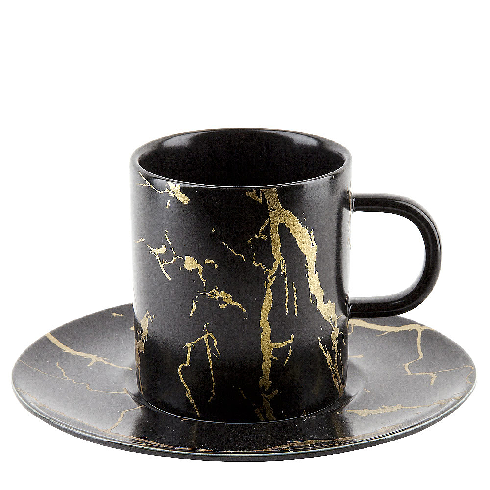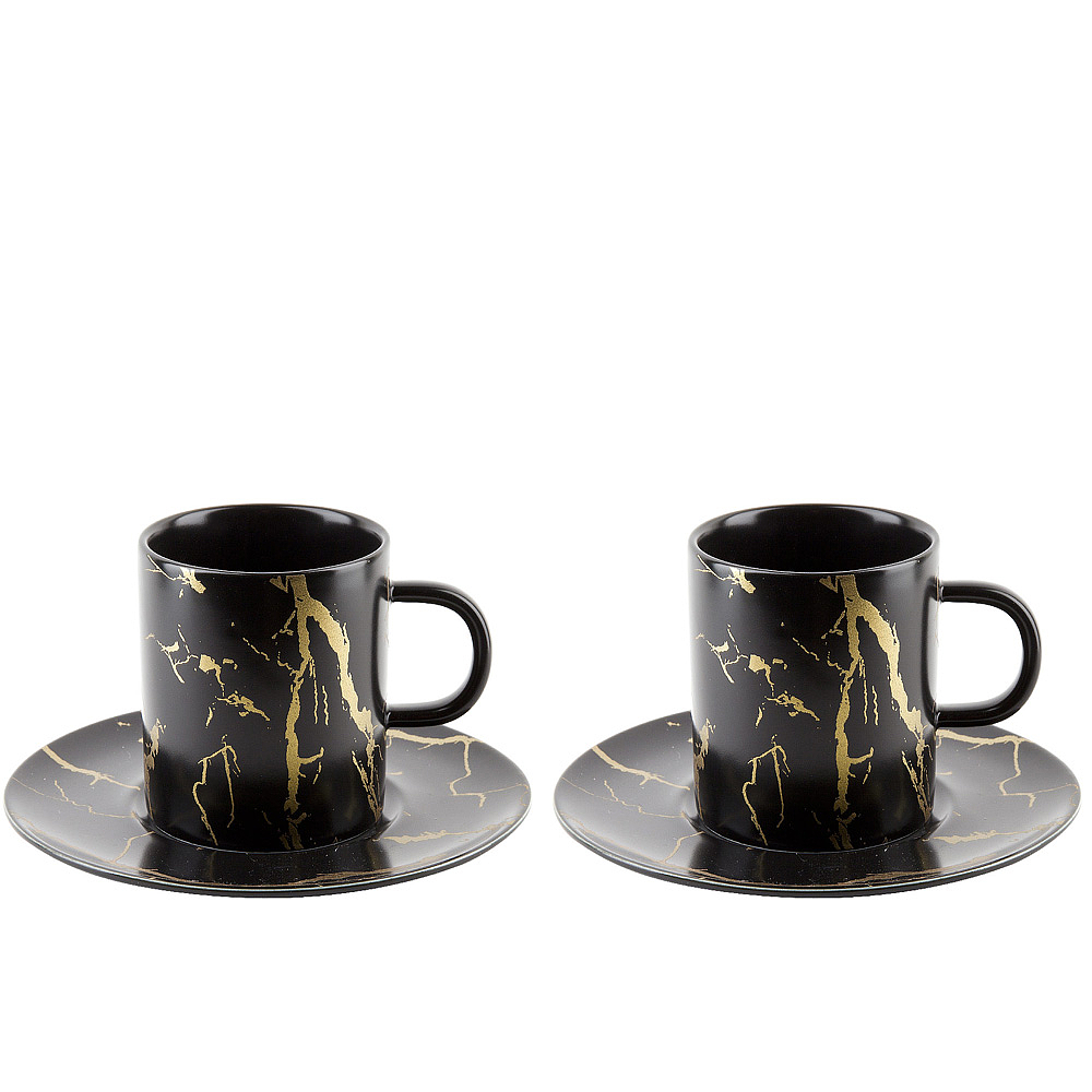 Набор: 2 чашки v=220 мл и 2 блюдца "Черный мрамор" (подарочная упаковка)