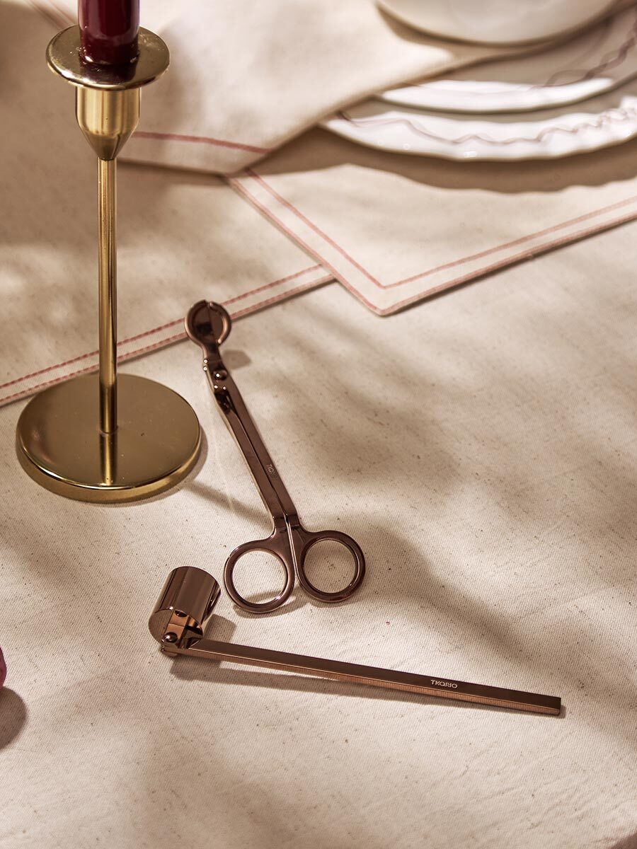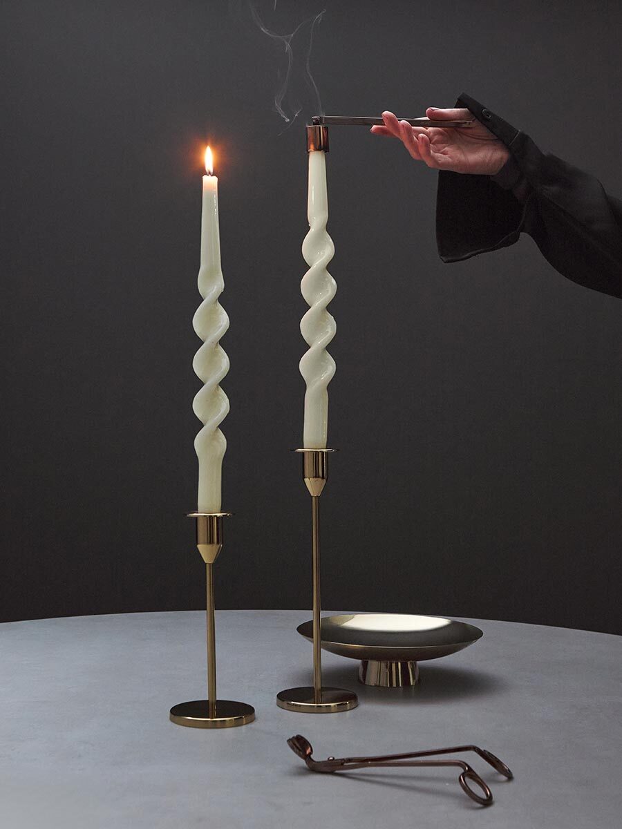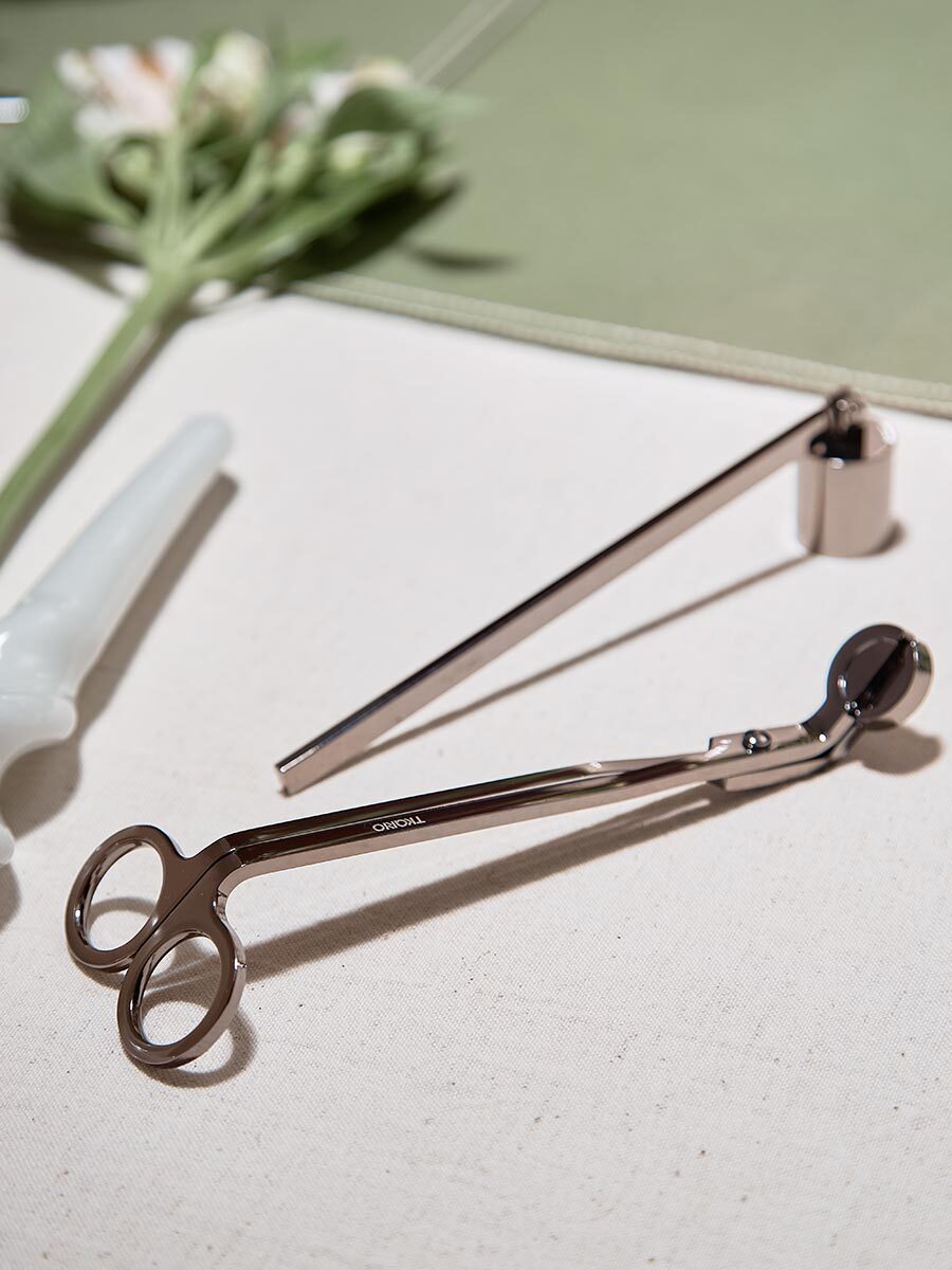 Набор аксессуаров для свечей из коллекции Essential создан для ценителей уюта и атмосферного освещения. В комплект входят ножницы для подрезания фитиля и специальный гаситель, который помогает безопасно погасить пламя без дыма и искр.