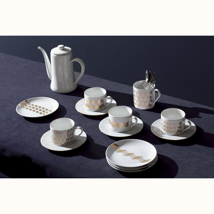В набор входят 4 блюдца из качественного фарфора, украшенные золотым орнаментом, который наносится вручную.