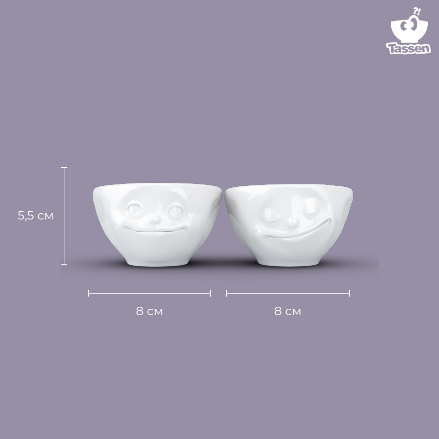 Оригинальные чаши с забавными рожицами отлично подойдут для подачи соусов и десертов. Их также можно использовать для подачи эспрессо.