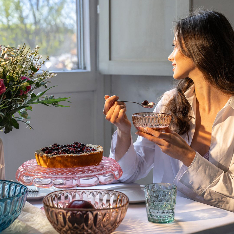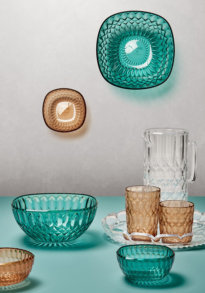 Набор чаш Vanity от итальянского бренда Guzzini – необычная посуда, в которой гармонично сочетаются привлекательный дизайн и практичность. Благодаря высокой устойчивости современного органического материала к внешним воздействиям, она идеально подходит для сервировки как в помещении, так и на свежем воздухе. Инновационное акриловое стекло на биооснове получают из растительных отходов. За счет особенной рельефной поверхности и ярких цветов предметы изящно переливаются на свету, что делает их еще более привлекательными.