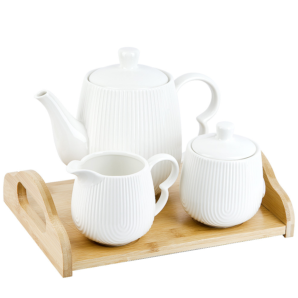 Чайник - 1 шт, молочник - 1 шт, сахарница - 1 шт, подставка - 1 шт
