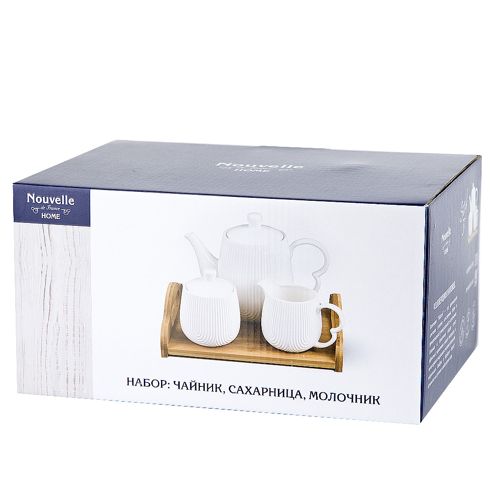 Набор: чайник, сахарница, молочик " " на бамбуковой подставке 26х19,5х18 см (подарочная упаковка)