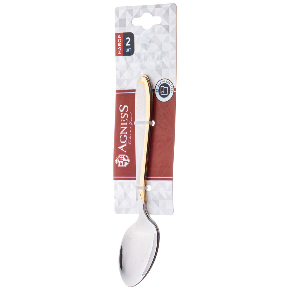 TM Agness предлагает стильные и современные предметы сервировки стола. Столовые приборы выполнены из нержавеющей стали. Изящная форма идеально подходит как для ежедневного использования, так и для сервировки праздничного стола. Продукция сертифицирована и безопасна для контакта с пищевыми продуктами. Рекомендована ручная мойка с добавлением нейтрального без абразивного моющего средства, не содержащего кислоту. Не замачивать столовые приборы. После мытья вытереть насухо.