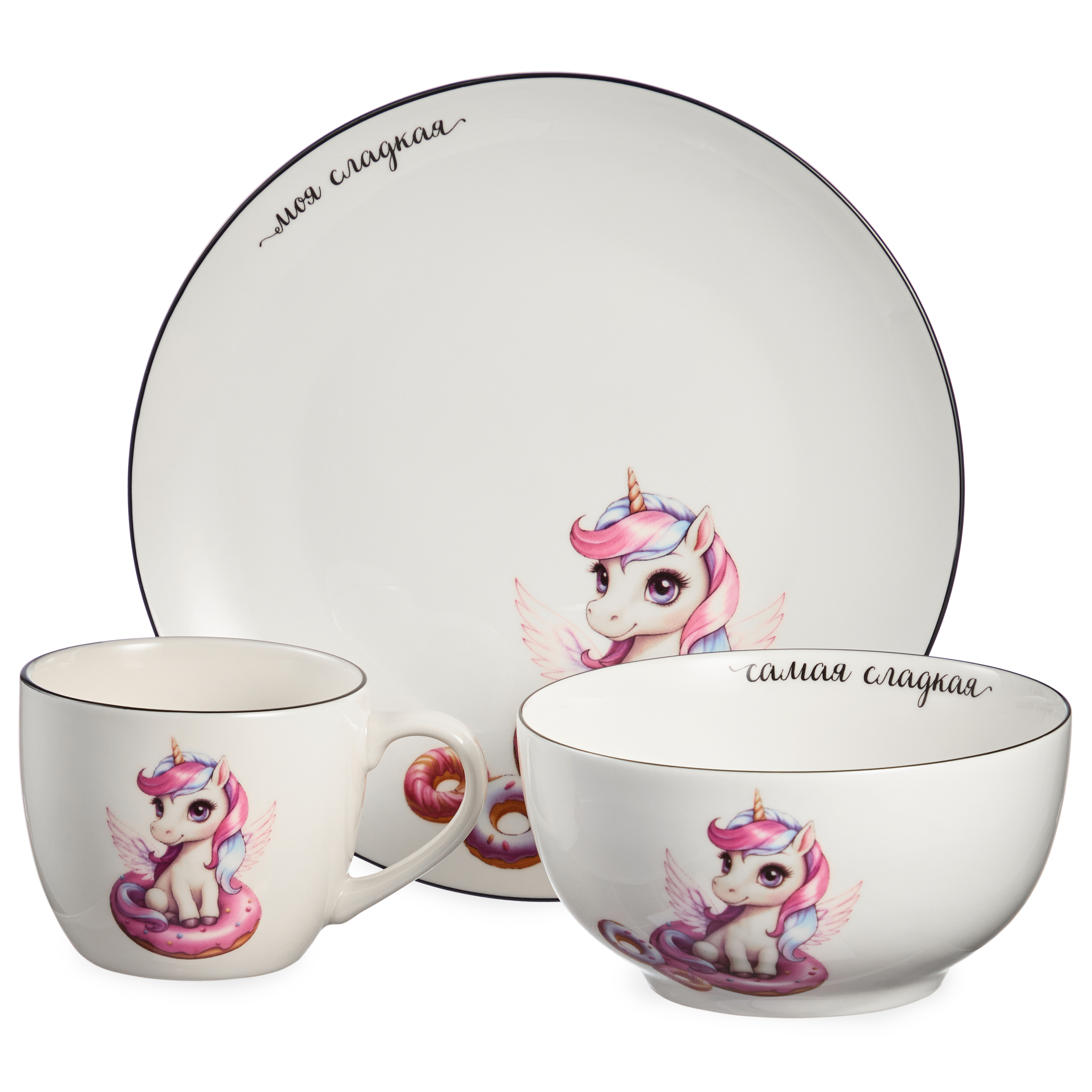 Набор детской посуды TM Lefard "САМАЯ СЛАДКАЯ" — это яркое, милое и функциональное решение для маленьких гурманов и их родителей. Каждая деталь набора украшена забавными пончиками и волшебными единорогами, которые превращают обычный приём пищи в волшебное приключение. Такая посуда не только привлекает внимание детей, но и делает процесс еды более увлекательным и приятным. Набор включает тарелку, кружку и салатник — всё необходимое для здорового и радостного перекуса. Идеальный выбор для тех, кто хочет добавить немного магии в повседневную жизнь ребёнка.