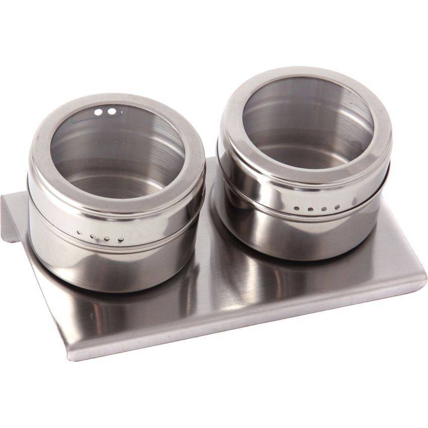 Каждая емкость для специй оснащена магнитом, вмонированным в дно, что позволяет при необходимости закрепить ее на любой другой металлической поверхности, например, дверце холодильника или металлической вытяжке над плитой.