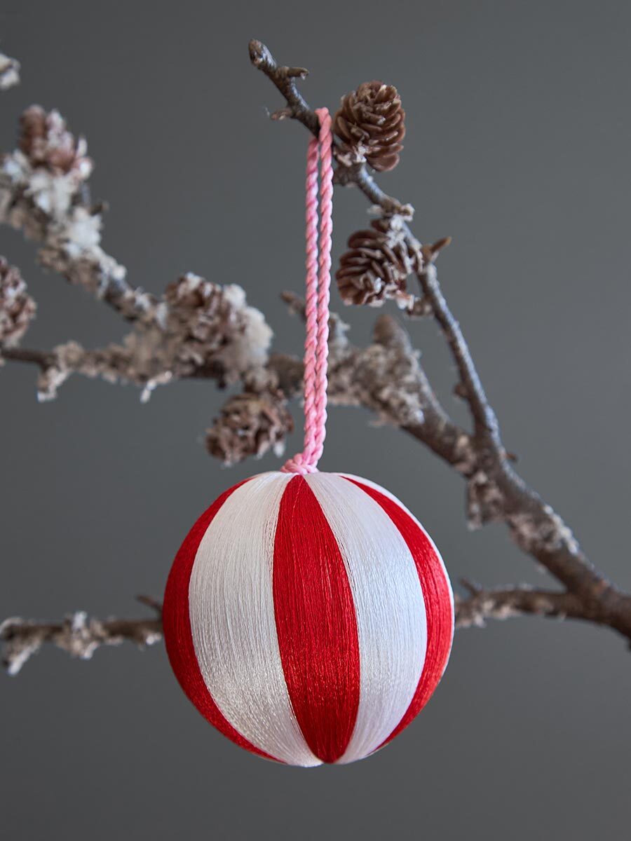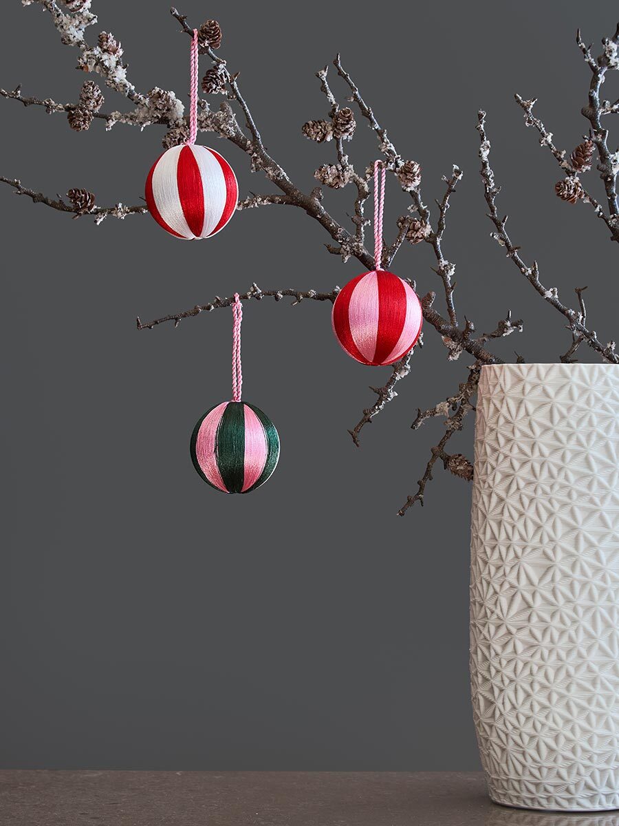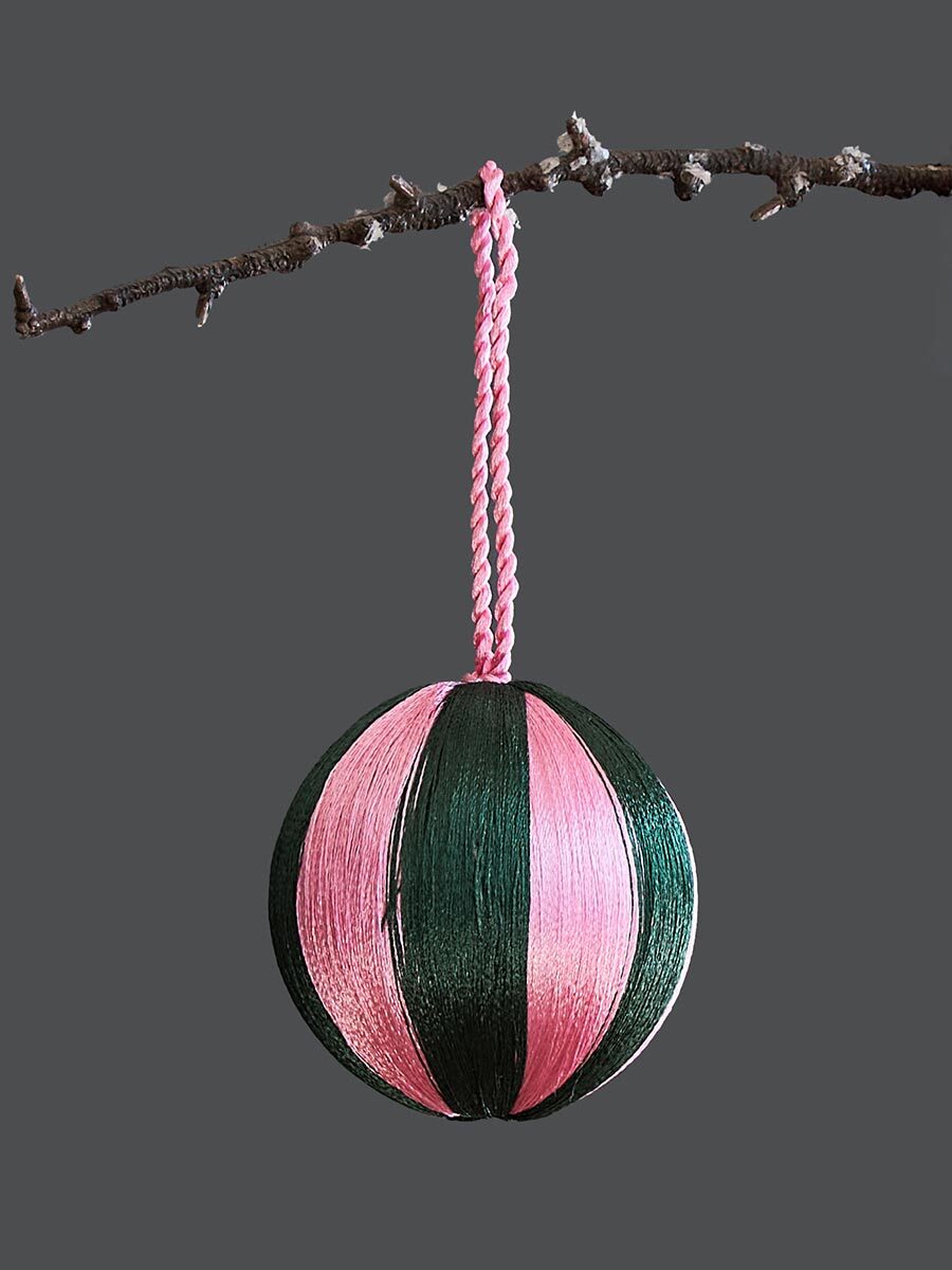 - Пластиковый каркас шаров декорирован разноцветными полиэстеровыми нитями, которые не теряют насыщенности цвета со временем.