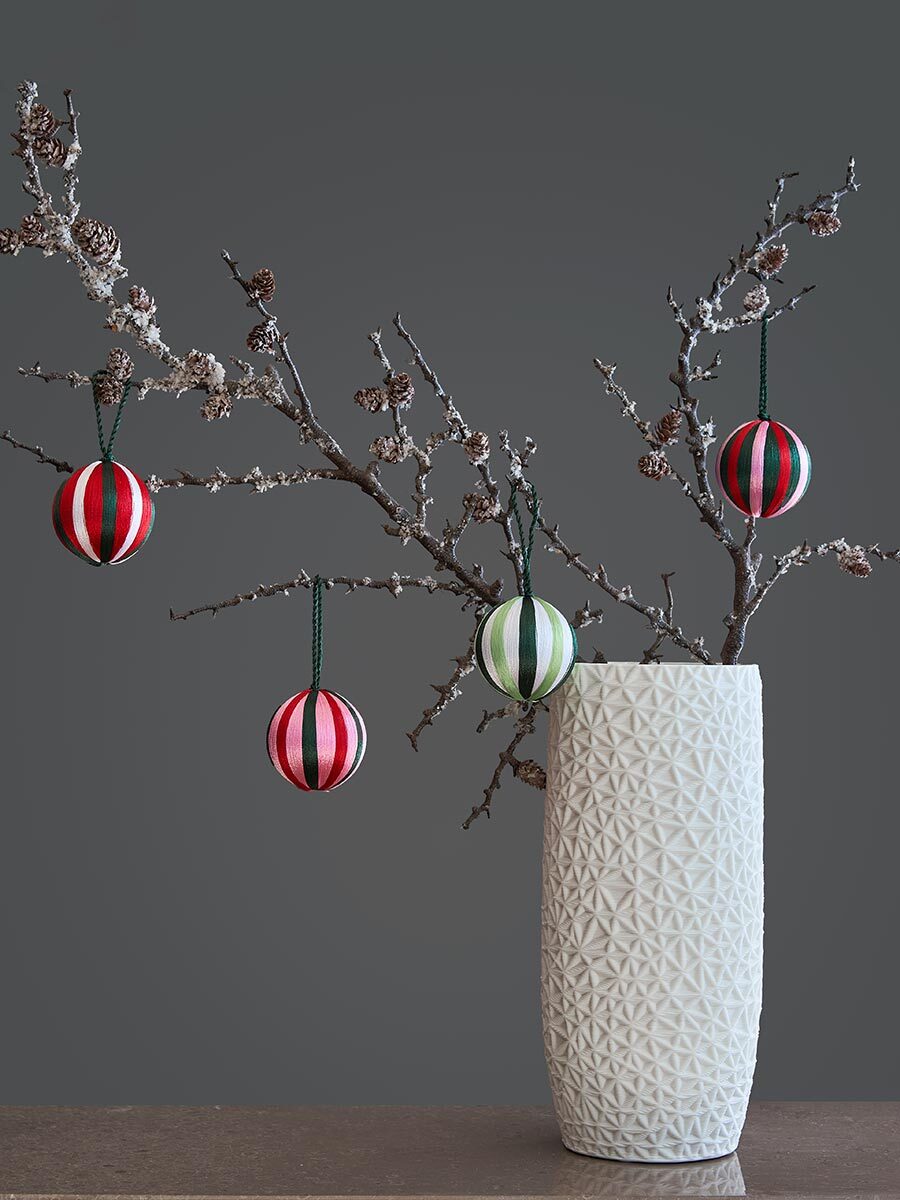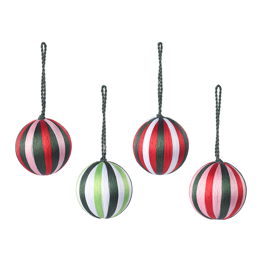 Словно квартет забавных клоунов в полосатых одежках, эти шарики подарят вам трепетное ощущение приближающегося праздника и предвкушения веселых сюрпризов. Разноцветные стильные игрушки обязательно придутся по душе ценителям елочных украшений в стиле ретро или тем, кто предпочитает яркий новогодний декор.