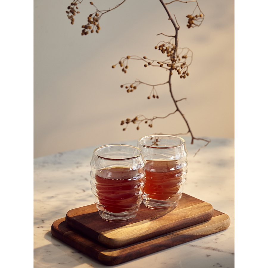 Стаканы с двойными стенками Serene от бренда Liberty Jones привлекают внимание необычным дизайном и идеально подходят как для холодных, так и для горячих напитков.