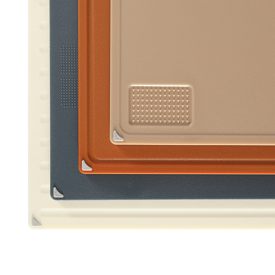 - Каждая доска в наборе имеет определенный цвет и специальную иконку с подсказкой назначения, что помогает исключить пересечение продуктов и упрощает процесс готовки.