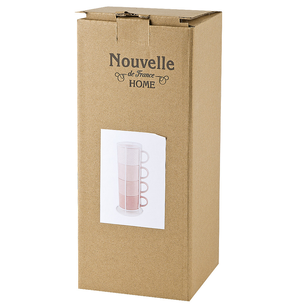 Набор из 4 кружек на подставке "Modern"(розовый) v= 320мл (керамика) (индивидуальная упаковка)