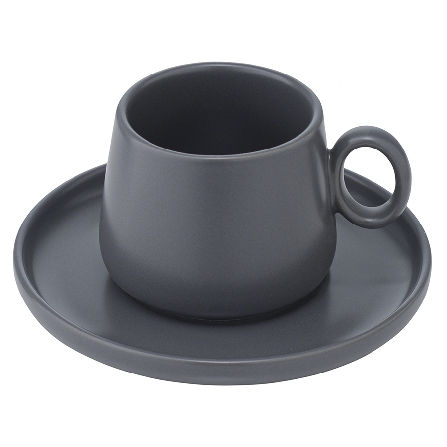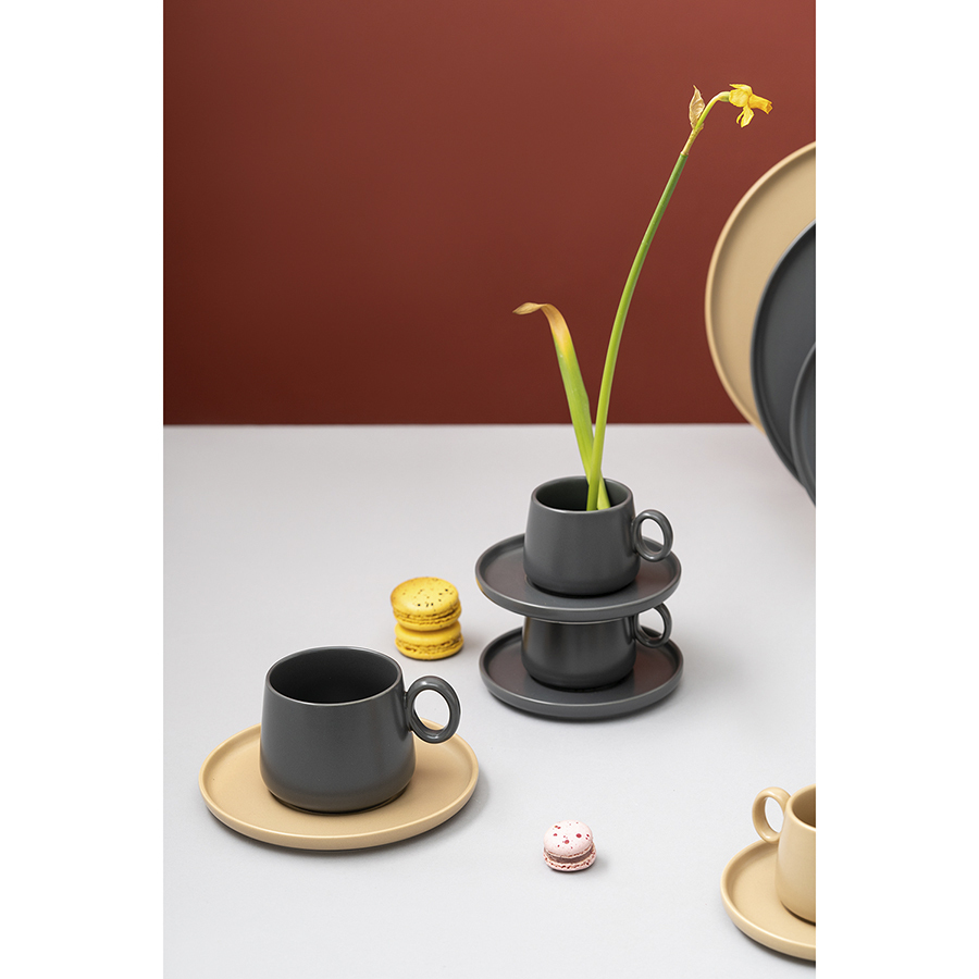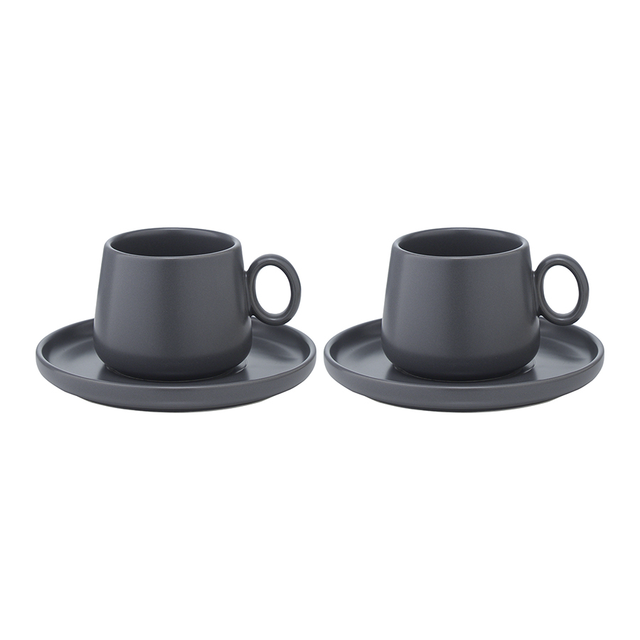 Набор из двух чашек с блюдцами темно-серого цвета из коллекции Essential, 120 мл