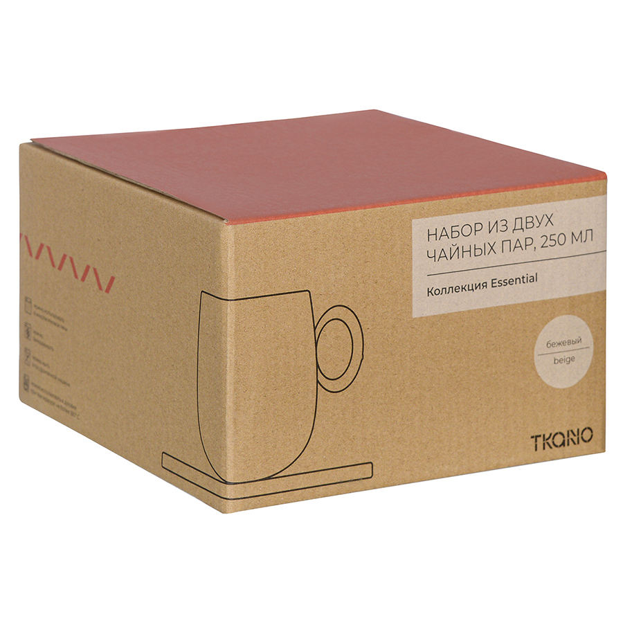 Набор из двух чайных пар бежевого цвета из коллекции Essential, 250 мл