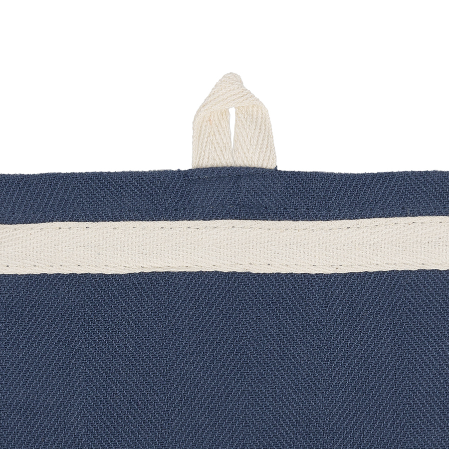 Набор кухонных полотенец темно-синего цвета из коллекции Essential выполнен из 100% хлопка саржевого плетения. Они подойдут практически для любого интерьера благодаря лаконичному канту из нашитой контрастной хлопковой киперной ленты. Такая отделка делает край особенно прочным и устойчивым к деформациям и разрывам. Благодаря саржевому переплетению ткани, полотенца обладают повышенной прочностью, не линяют, хорошо впитывают и испаряют влагу, почти не мнутся, на них не образуются катышки. С изнаночной стороны есть петелька для подвешивания.