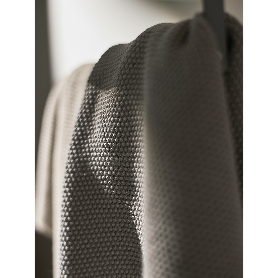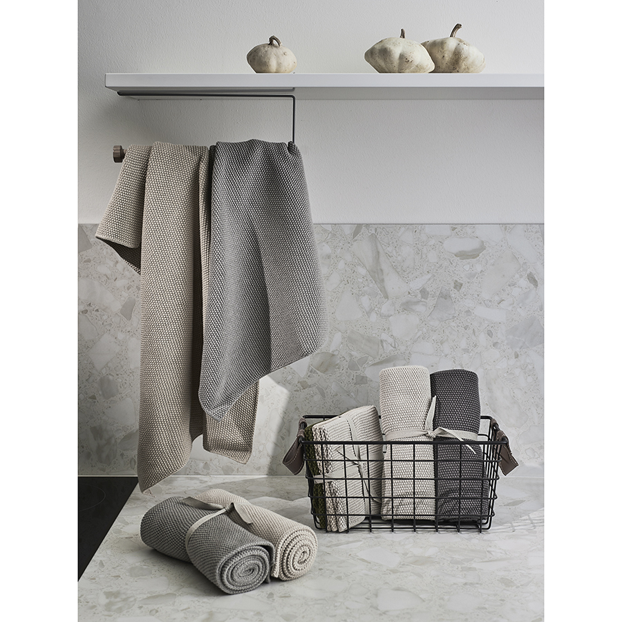 - Полотенца нейтральных оттенков вписываются в любой интерьер, а их вязаная текстура добавляет в оформление нотку утонченности.