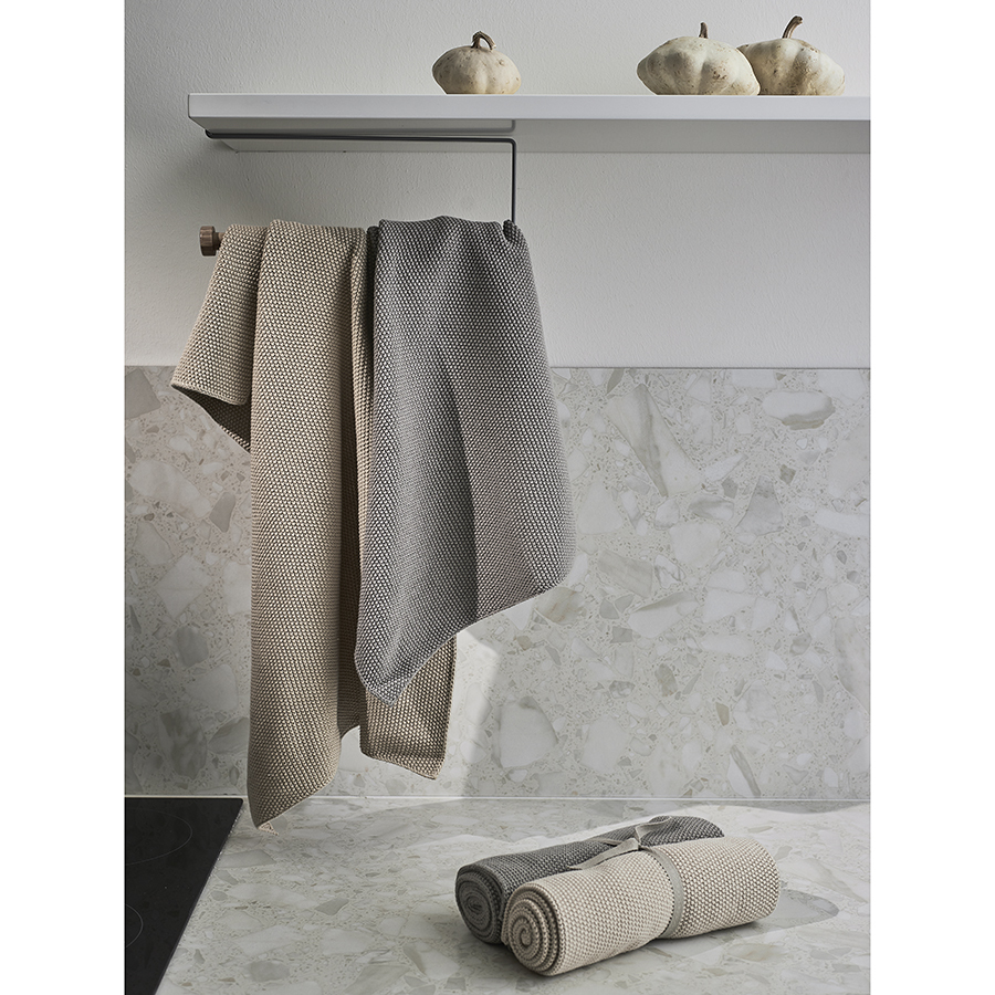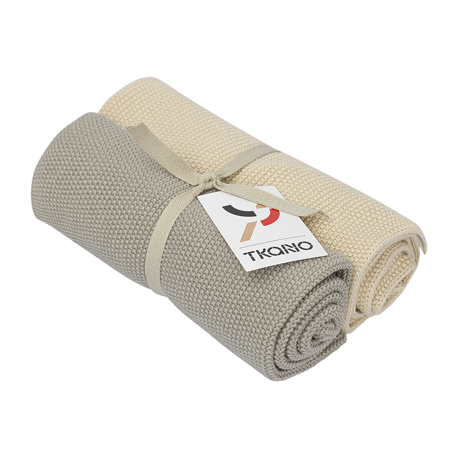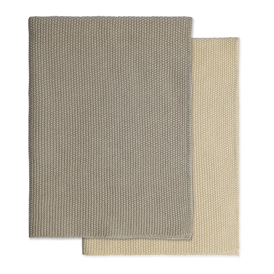 Набор из двух кухонных вязаных полотенец из коллекции Essential, серое/экрю