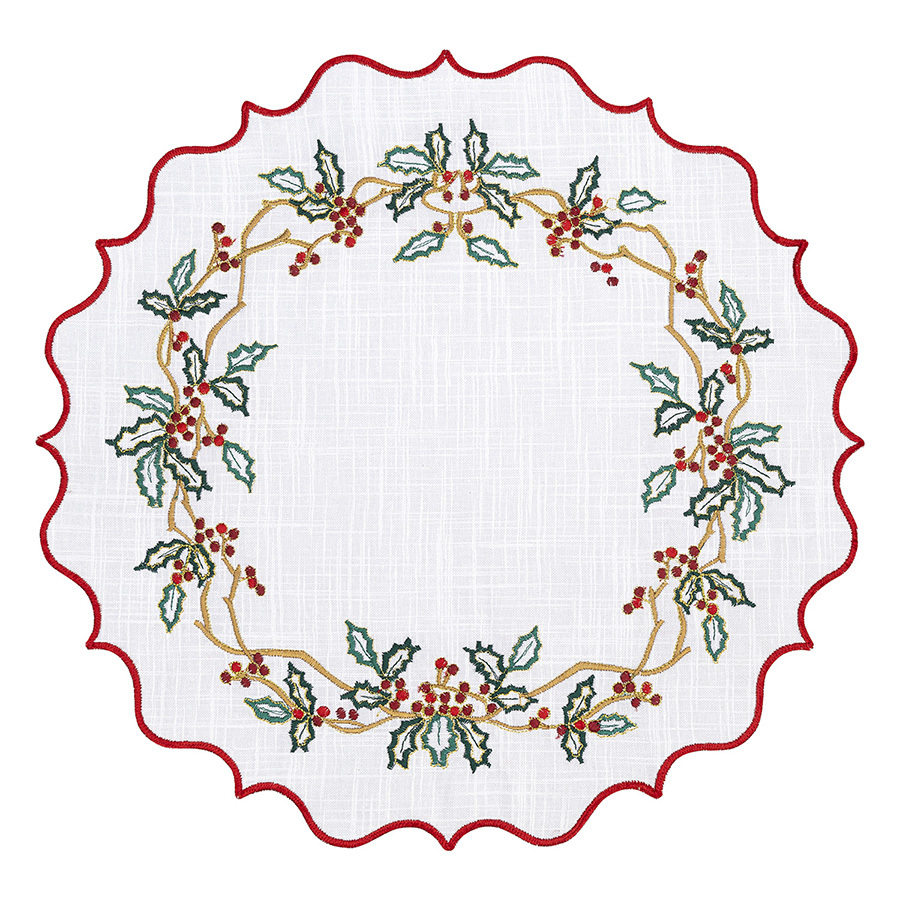 Салфетки под приборы Festive wreath из коллекции New Year Essential помогут сделать акцент на деталях сервировки и создать особую атмосферу за столом. Вышивка в виде хвойных веточек и ягод воплощает символику праздника, напоминая о новогоднем волшебстве, подарках и уютных вечерах в кругу семьи и друзей.