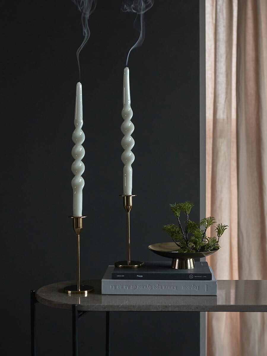 Набор из двух свечей из коллекции Essential создаст волшебную атмосферу праздника. Изящные, словно витые колонны при входе в замок Снежной Королевы, они идеально подходят для украшения праздничного стола, камина или подоконника.