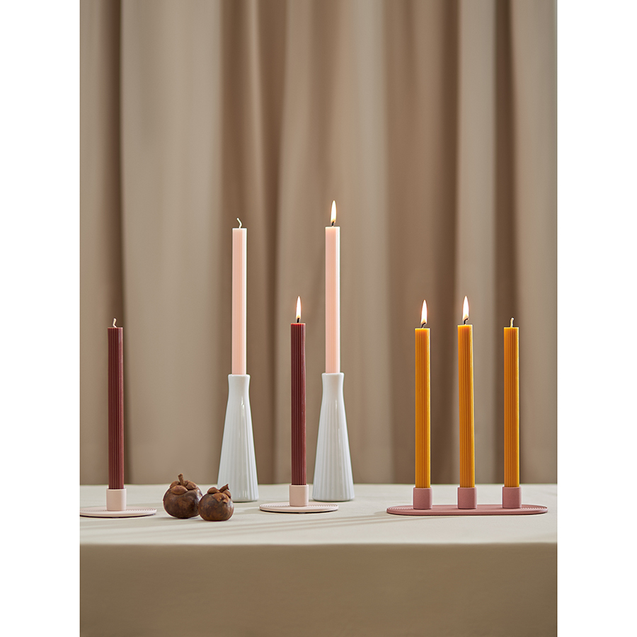 Свечи цвета карри из коллекции Edge отлично подойдут в качестве декора и для создания особой атмосферы в интерьере. Их дизайн с фактурными гранями сочетает в себе классику и современные мотивы, отражая прочную связь между прошлым и настоящим. Эти свечи станут не только источником мягкого света, но и выразительным акцентом, способным придать любому пространству характер и индивидуальность.