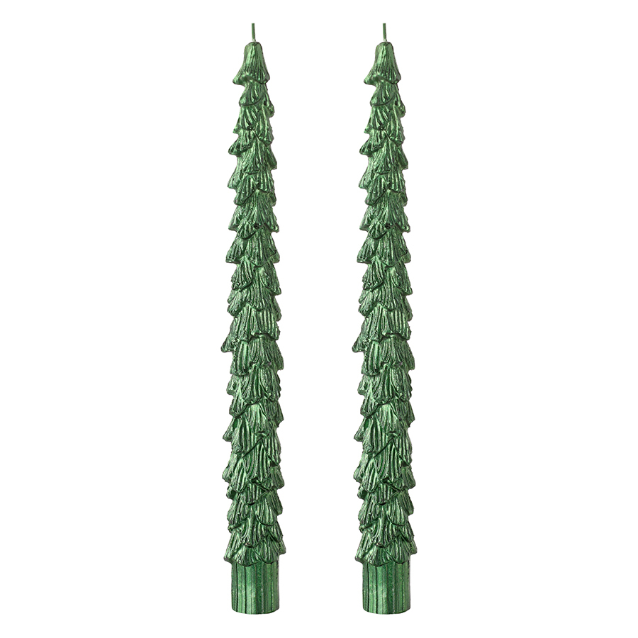 Набор из двух свечей из коллекции New Year Essential создаст волшебную атмосферу праздника. Высокие зеленые елочки идеально подходят для украшения праздничного стола, камина или подоконника.