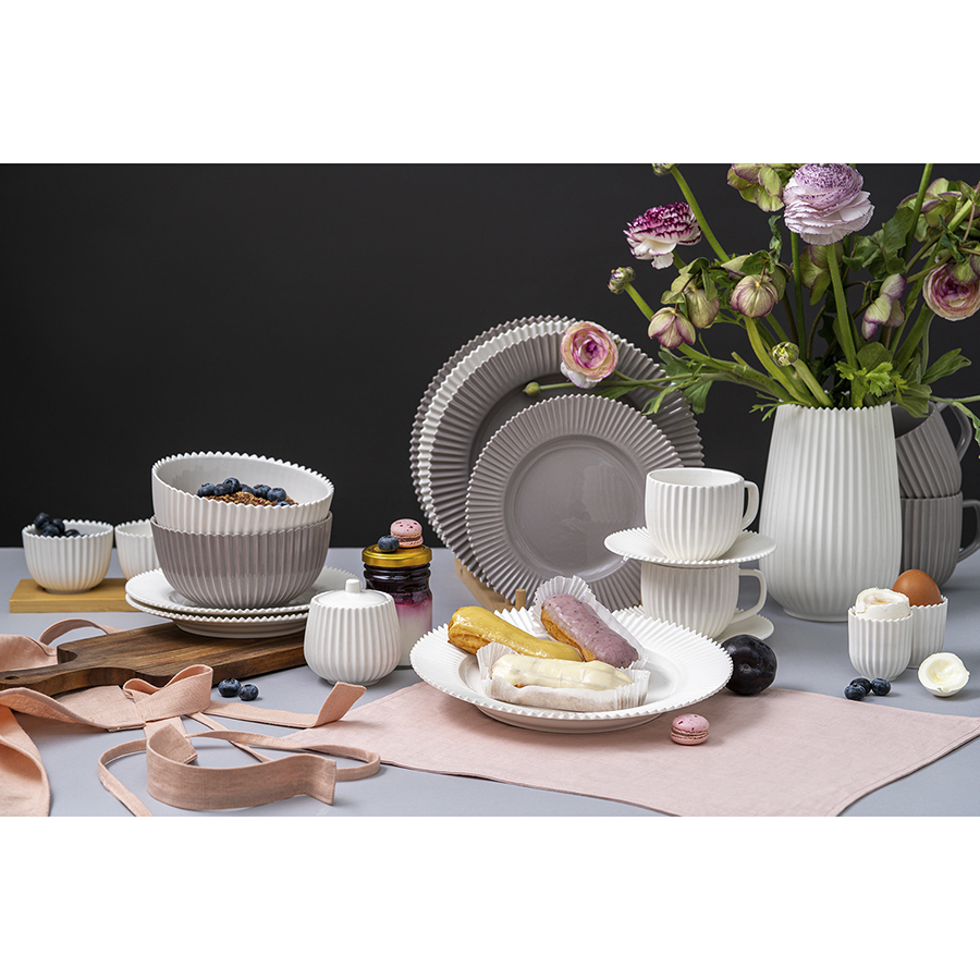 Набор из двух десертных тарелок белого цвета подойдет как для праздничной сервировки, так и для обычного приема пищи в будний день. Фарфоровые борта тарелок имеют рифленую поверхность и оригинальный зубчатый край, что добавляет дизайну утонченность и изящество. При этом они достаточно прочны, чтобы выдерживать мытье в посудомоечной машине, так что ухаживать за ними будет очень просто. С этими тарелками можно составить целый сервиз, добавив к ним другую посуду из серии Edge — например, чашки и салатники.