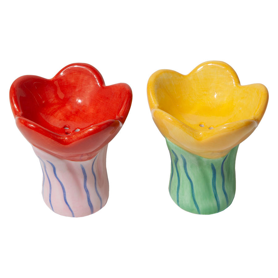 Набор из солонки и перечницы Bloom сделает вашу кухню яркой и необычной, непременно подарит радостное настроение. Оригинальный дизайн обеспечивает изделиям привлекательный внешний вид, а прочная керамика – долгий срок службы. Аксессуар идеально подойдет как для сервировки праздничного стола, так и для ежедневного использования.