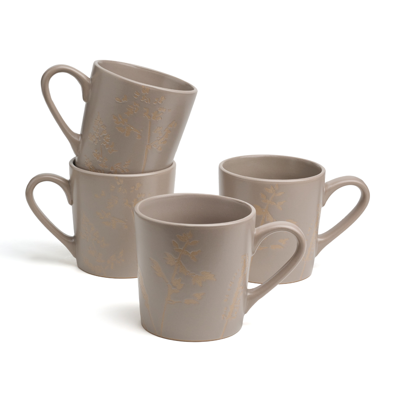 Благодаря сочетанию однотонного фона с красивыми рельефными акцентами в виде трав и цветов, эта посуда удачно впишется в любой интерьер.
