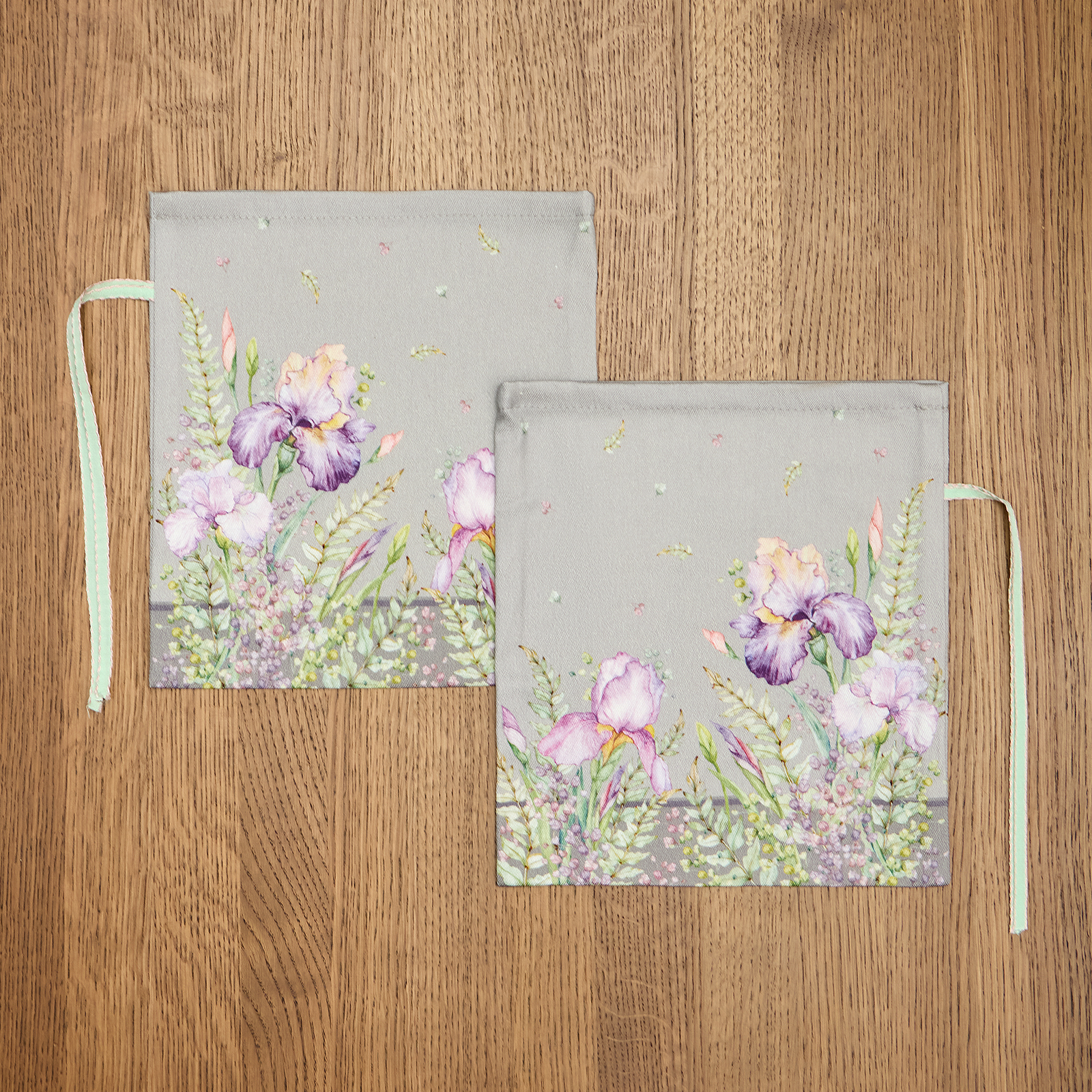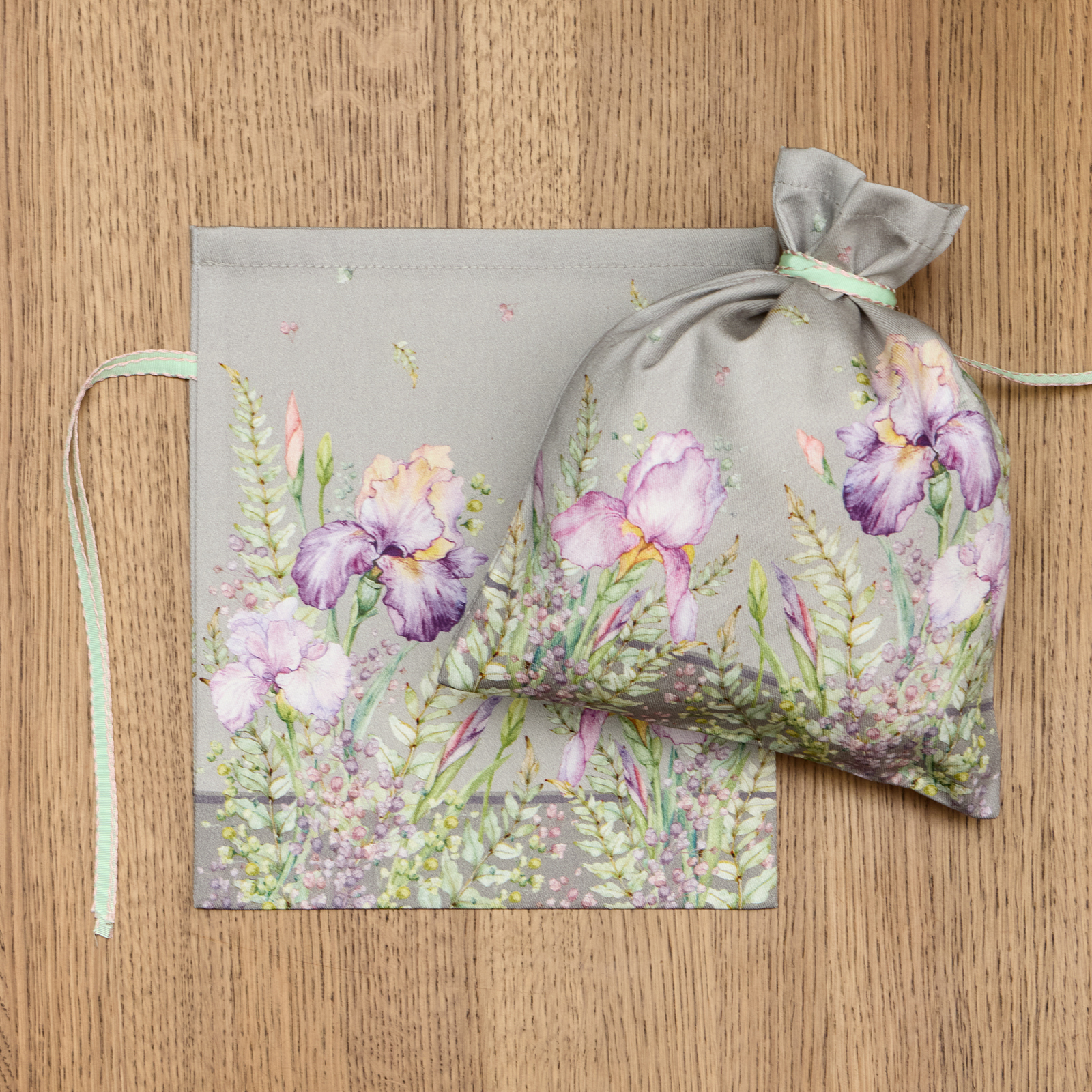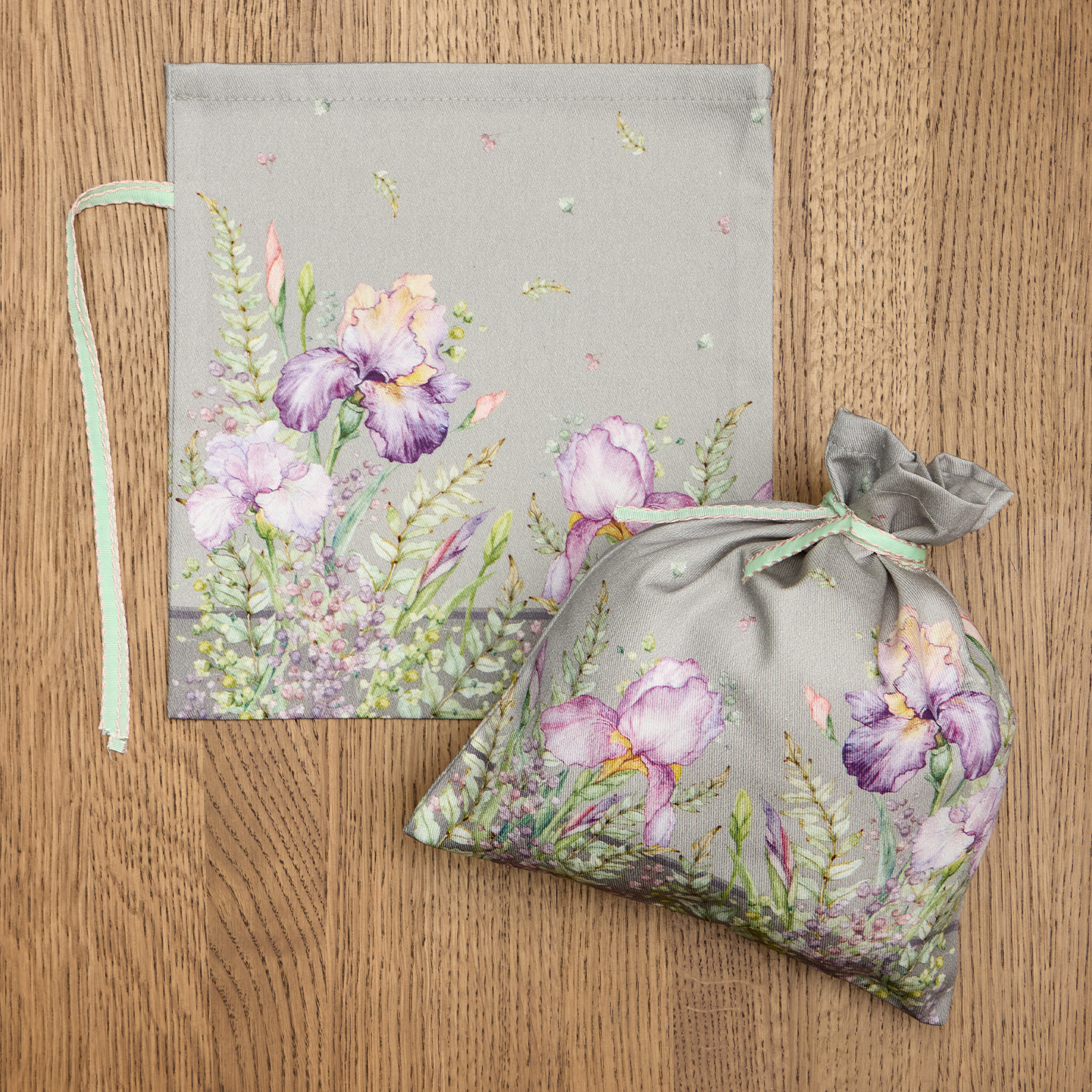 Набор тканевых мешочков Lefard "Irises" предназначен для хранения и упаковки подарков и хранения. Изготовлены из 100% хлопка с саржевым переплетением — гипоаллергенный, прочный и натуральный материал. Мешочки украшены принтом с цветами ирисов, нанесённым цифровым методом, который не выцветает до 100 стирок.